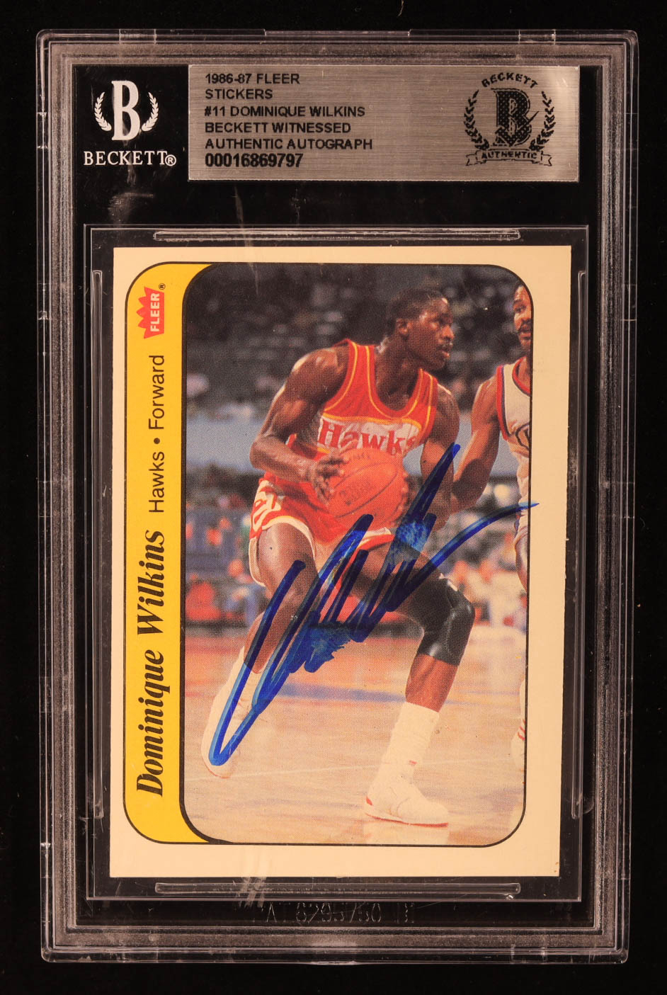 Dominique Wilkins Signed 1986-87 Fleer Stickers #11 RC (BGS)