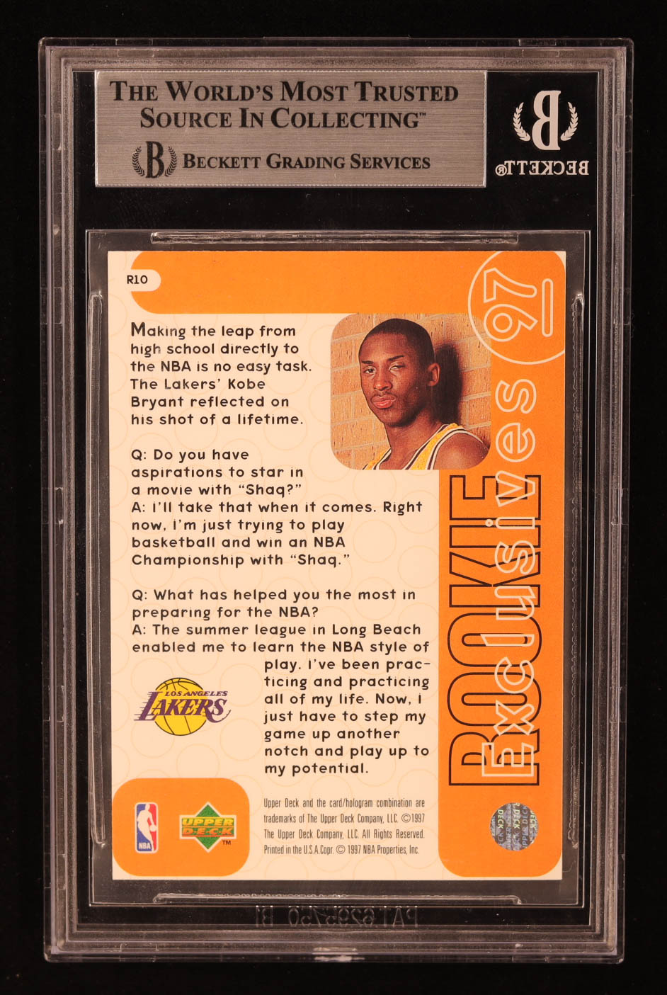 Kobe Bryant 1996-97 Upper Deck Rookie Exclusives #R10 RC (BGS 9)