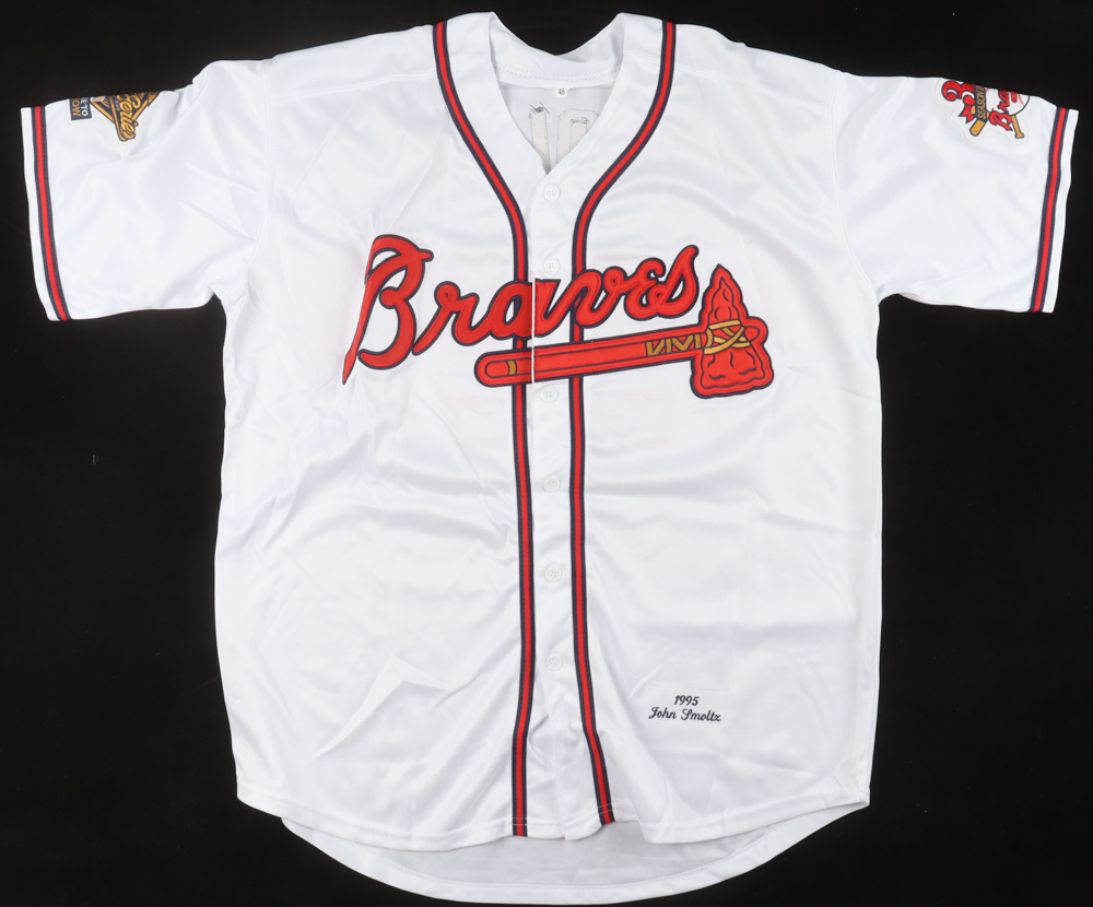 Custom jersey. Everything is sewn on, size 48. Hand-signed and inscribed by John Smoltz (HOF).