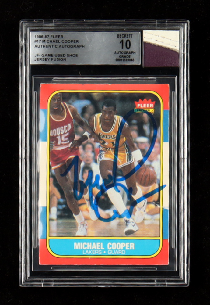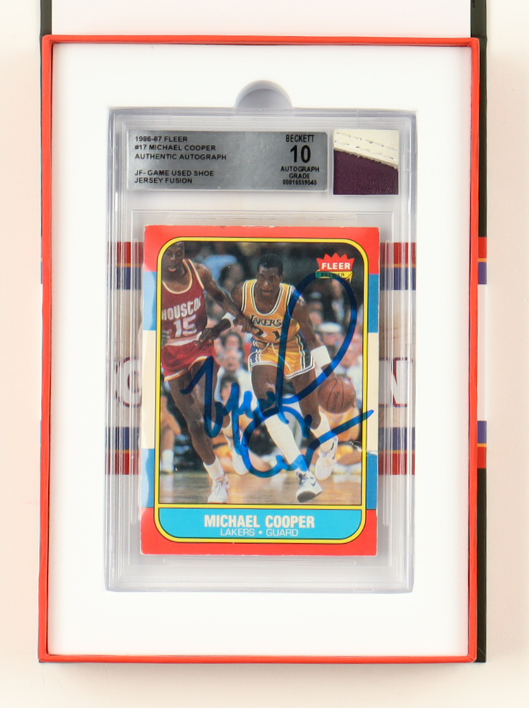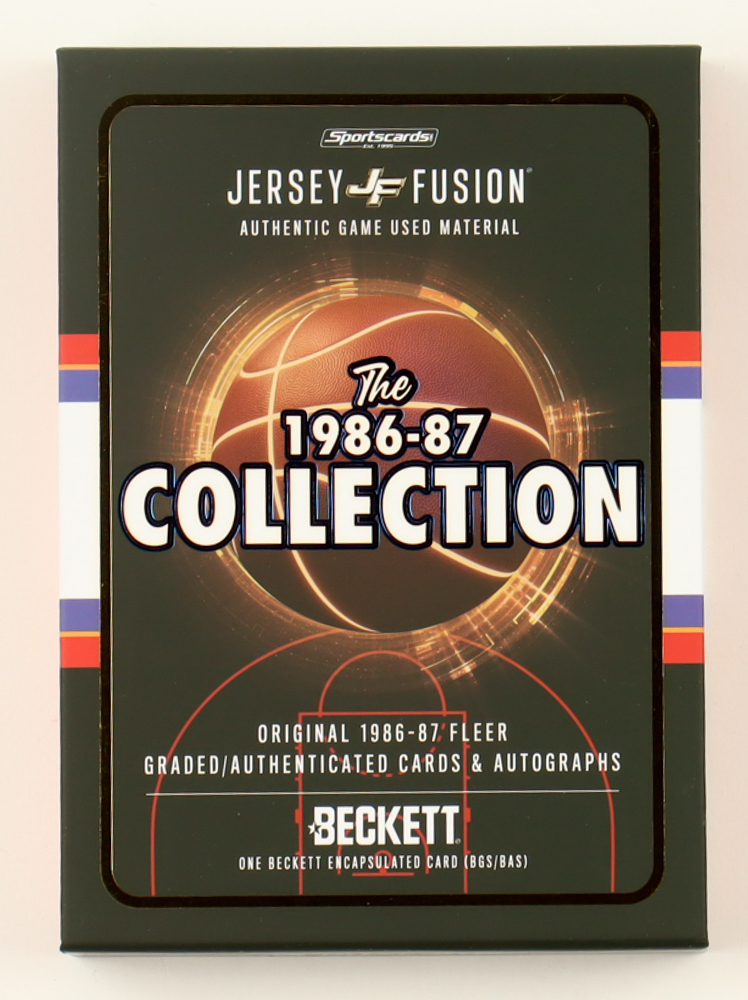 Jersey Fusion teamed with Beckett to authenticate, grade, and slab the many elements that make this collection unique. Each custom holder contains a Premium Game Used material swatch, with an original 1986-87 Fleer Card, with over 100 of the 131 players in total providing autographs for this series.