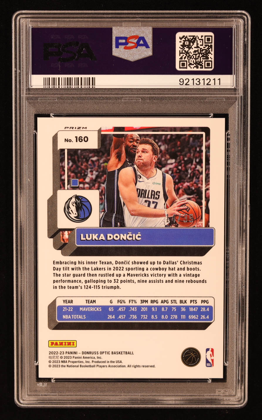 Luka Doncic 2022-23 Donruss Optic Black Velocity #160 #14/39 (PSA 9)