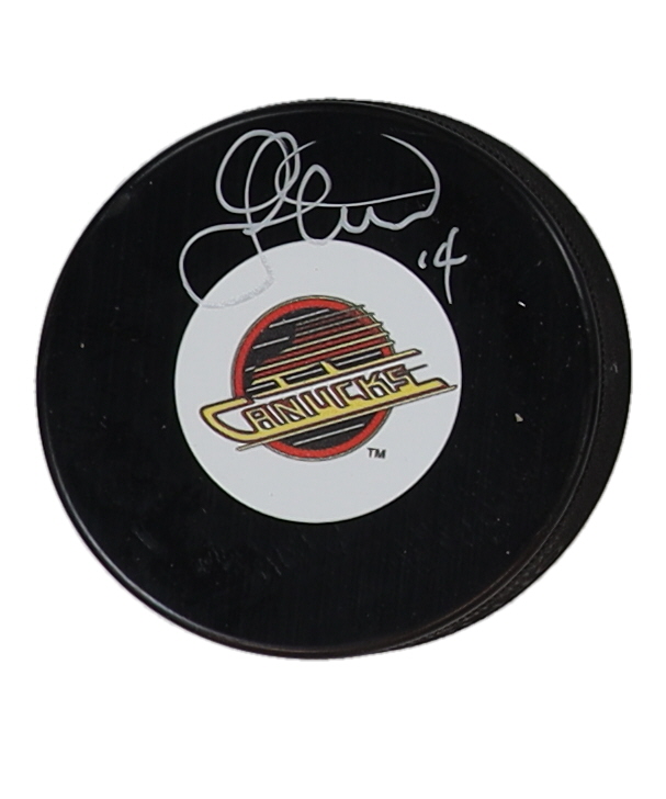 Geoff Courtnall Signed Canucks Logo Hockey Puck (Premium Autographs)