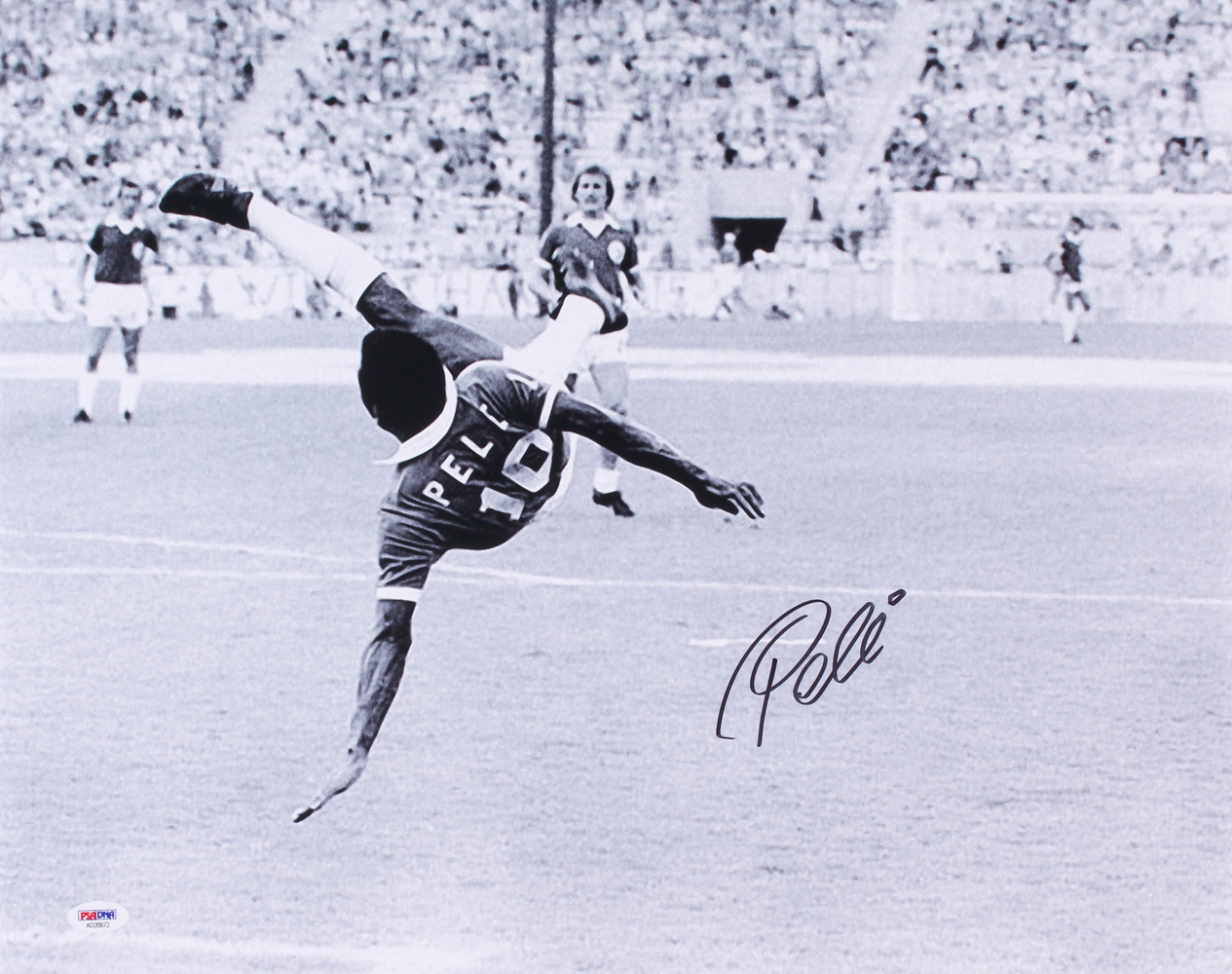 Pele Signed "Bicycle Kick" 16x20 Photo (PSA COA)