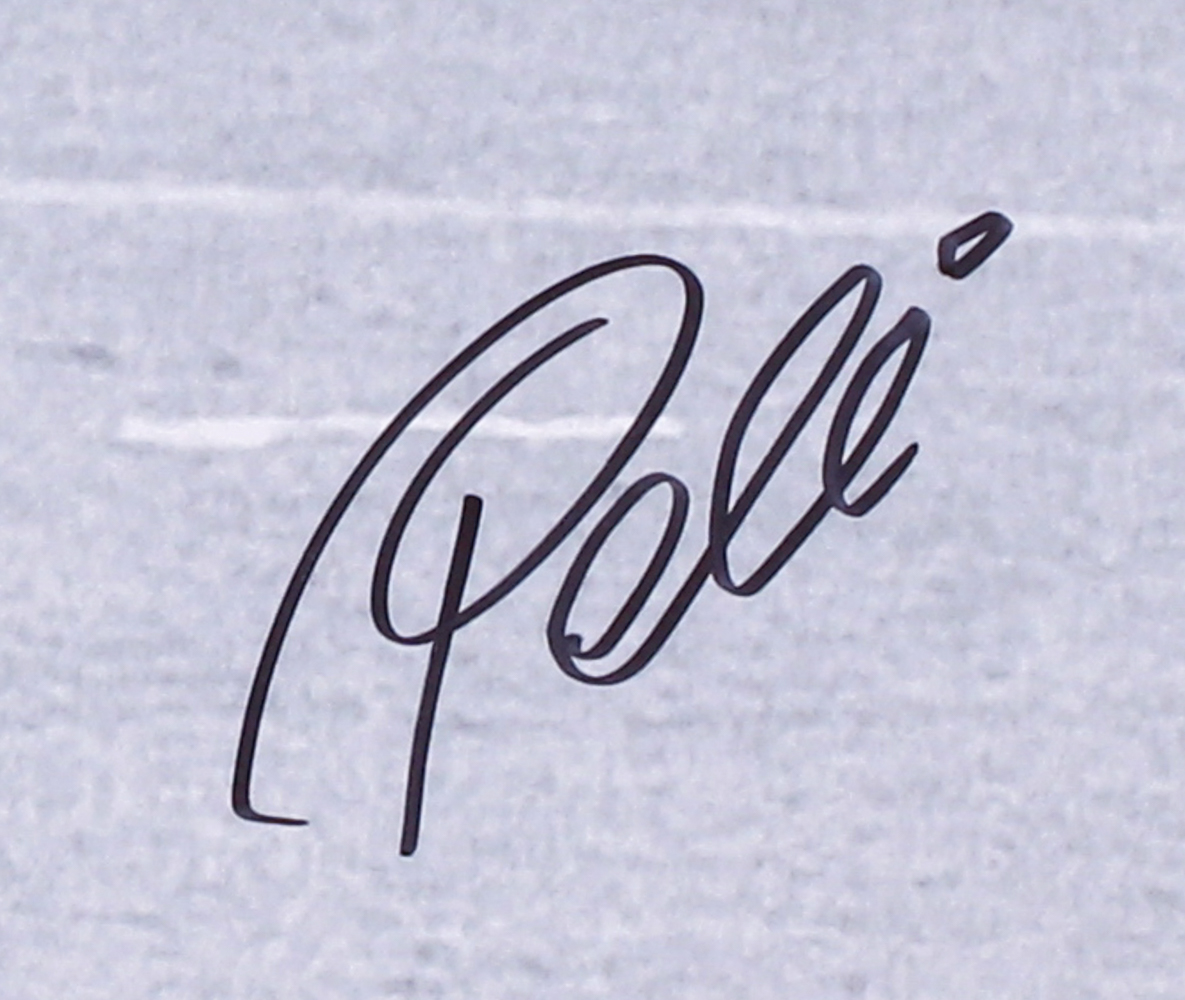 Photo measures 16" x 20" in size and is hand-signed in black felt-tip pen by Pele.