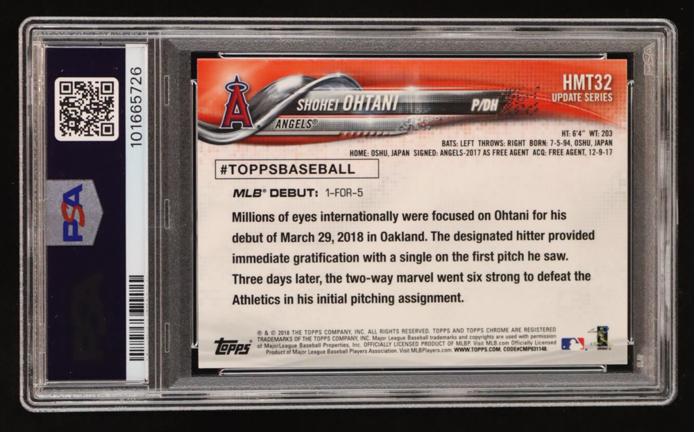 Shohei Ohtani 2018 Topps Chrome Update #HMT32 RC (PSA 10)