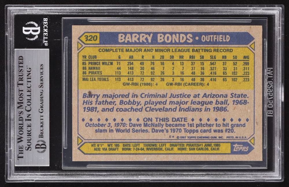 Barry Bonds 1987 Topps #320 RC (BGS 8.5)