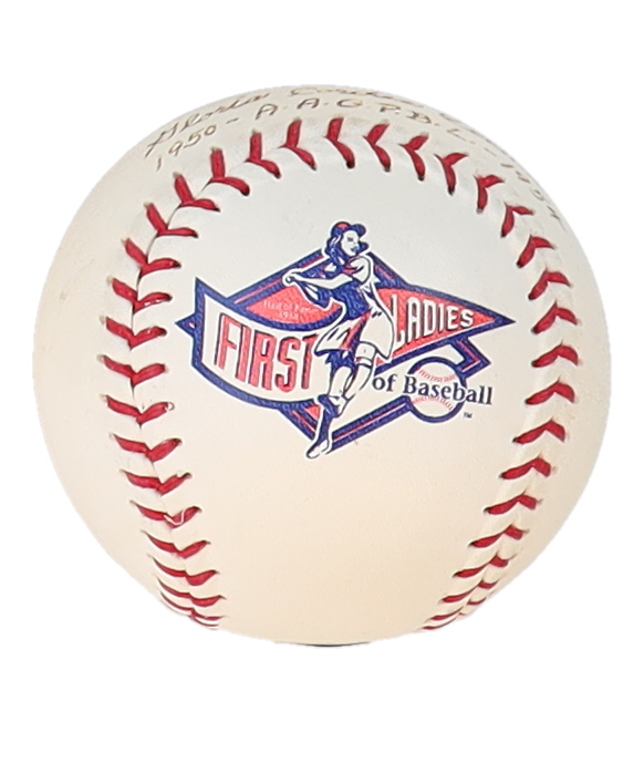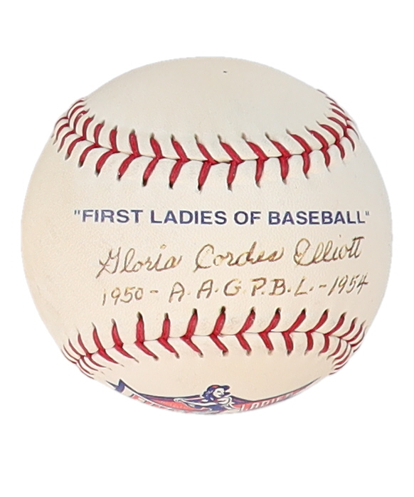 Gloria Cordes Signed "First Ladies of Baseball" Logo Baseball Inscribed "1950 - A.A.G.P.B.L. - 1954" (Beckett)