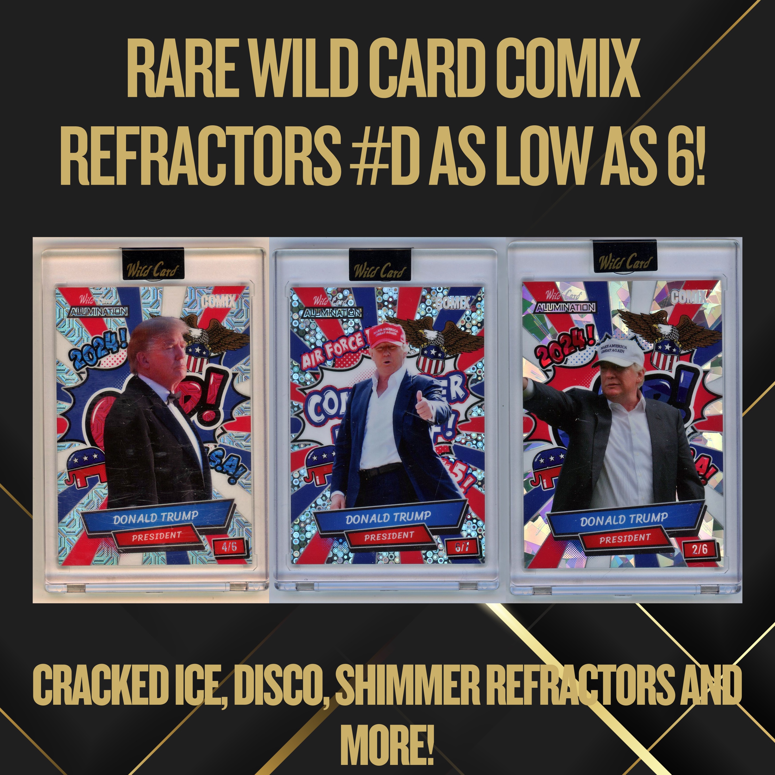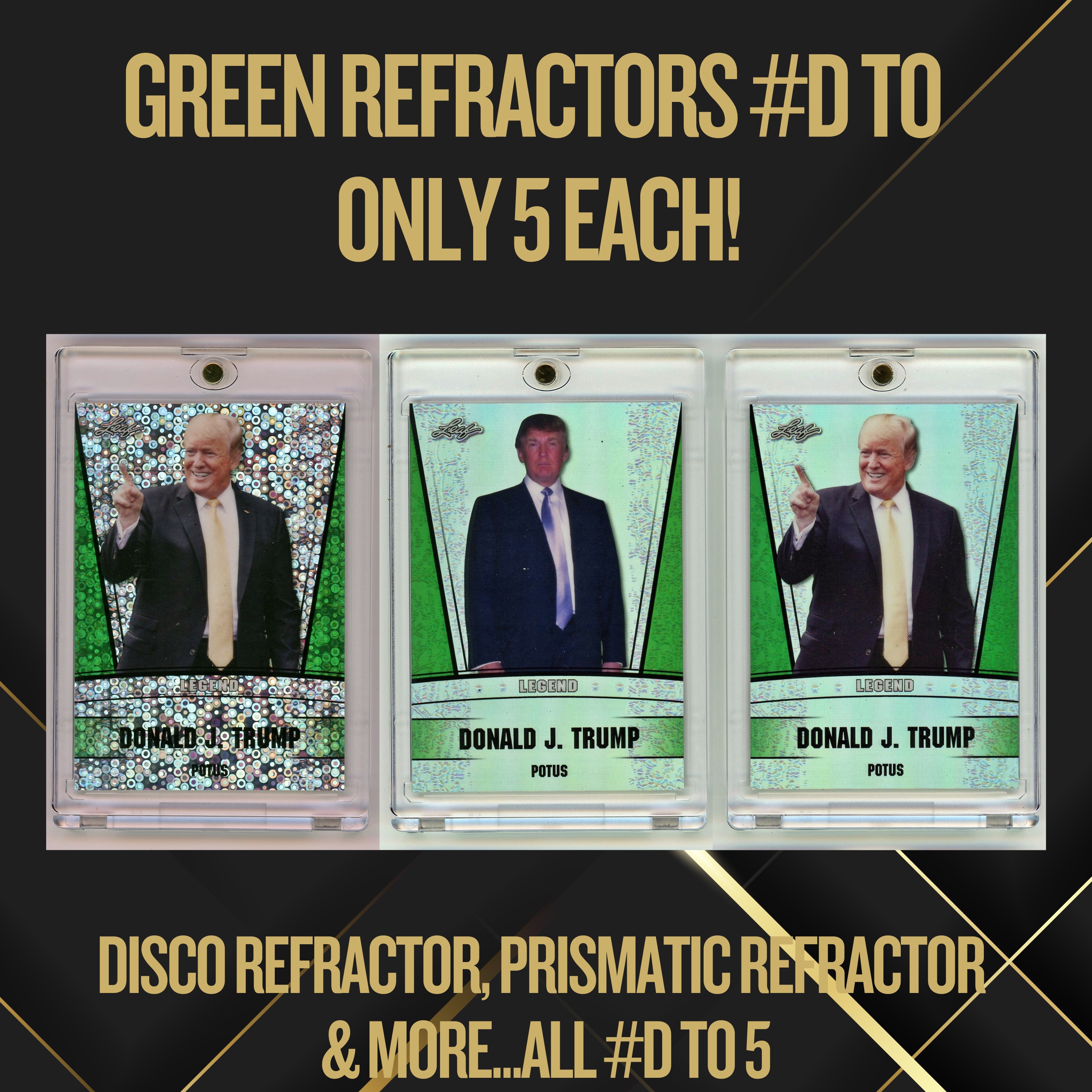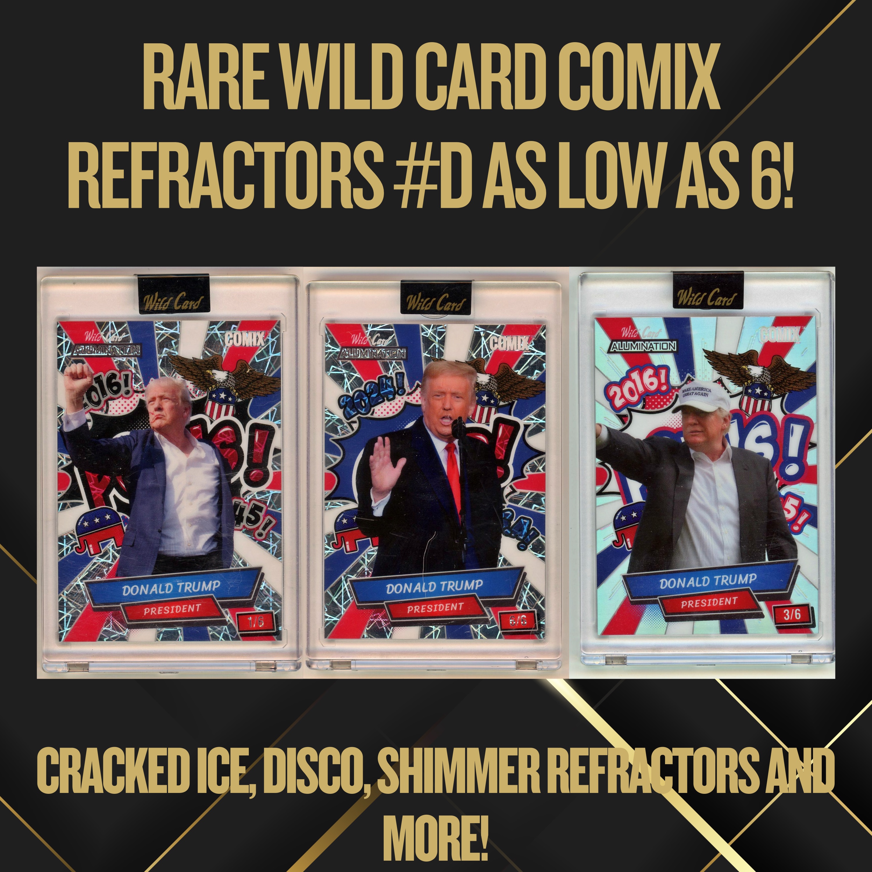 Every pack includes (1) Donald Trump Refractor Serial Numbered to 25 or Less! Look for 1/1 Cut Autograph!
