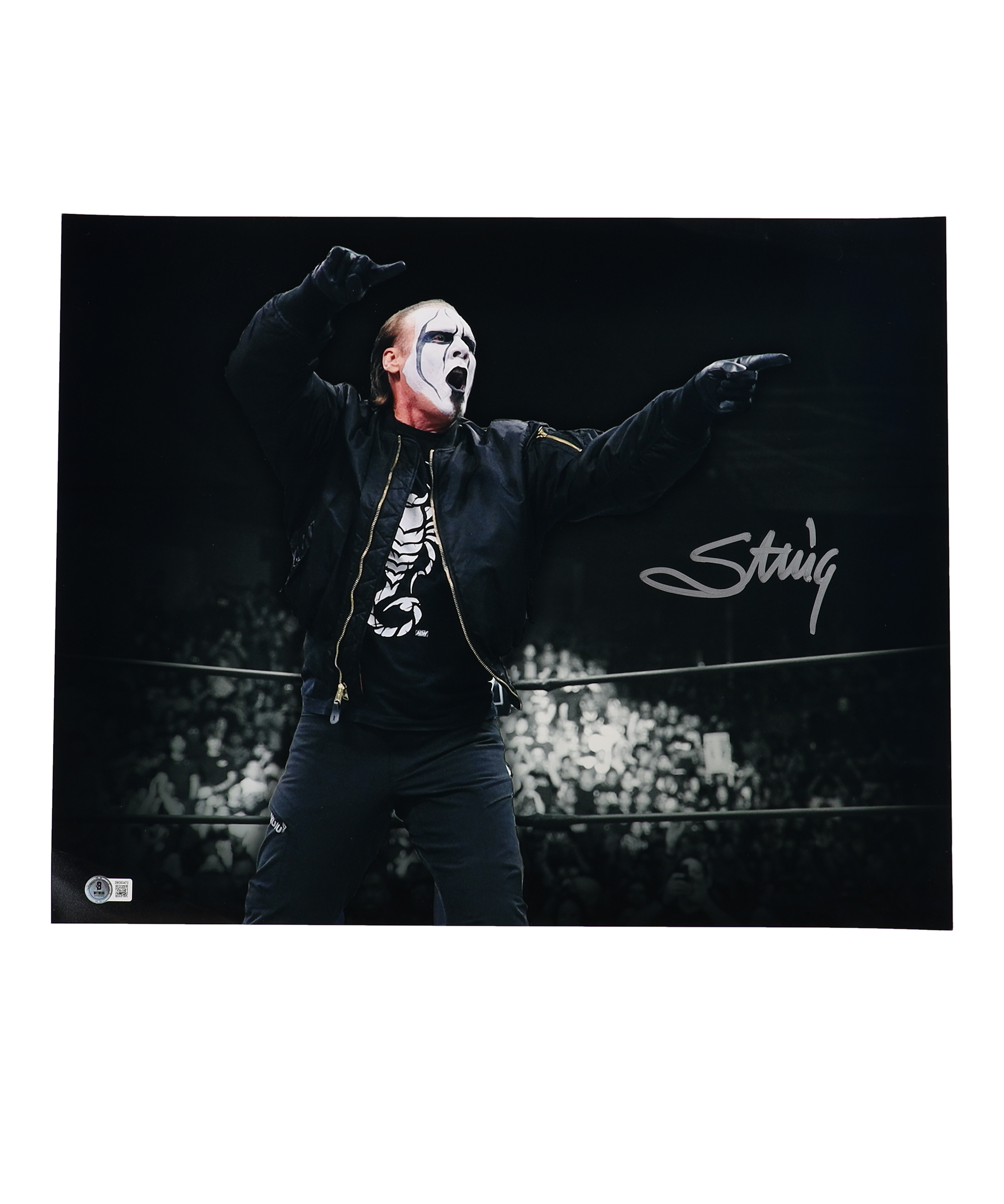 Photo measures approximately 16" x 20" in size and has been hand-signed by Sting (HOF).