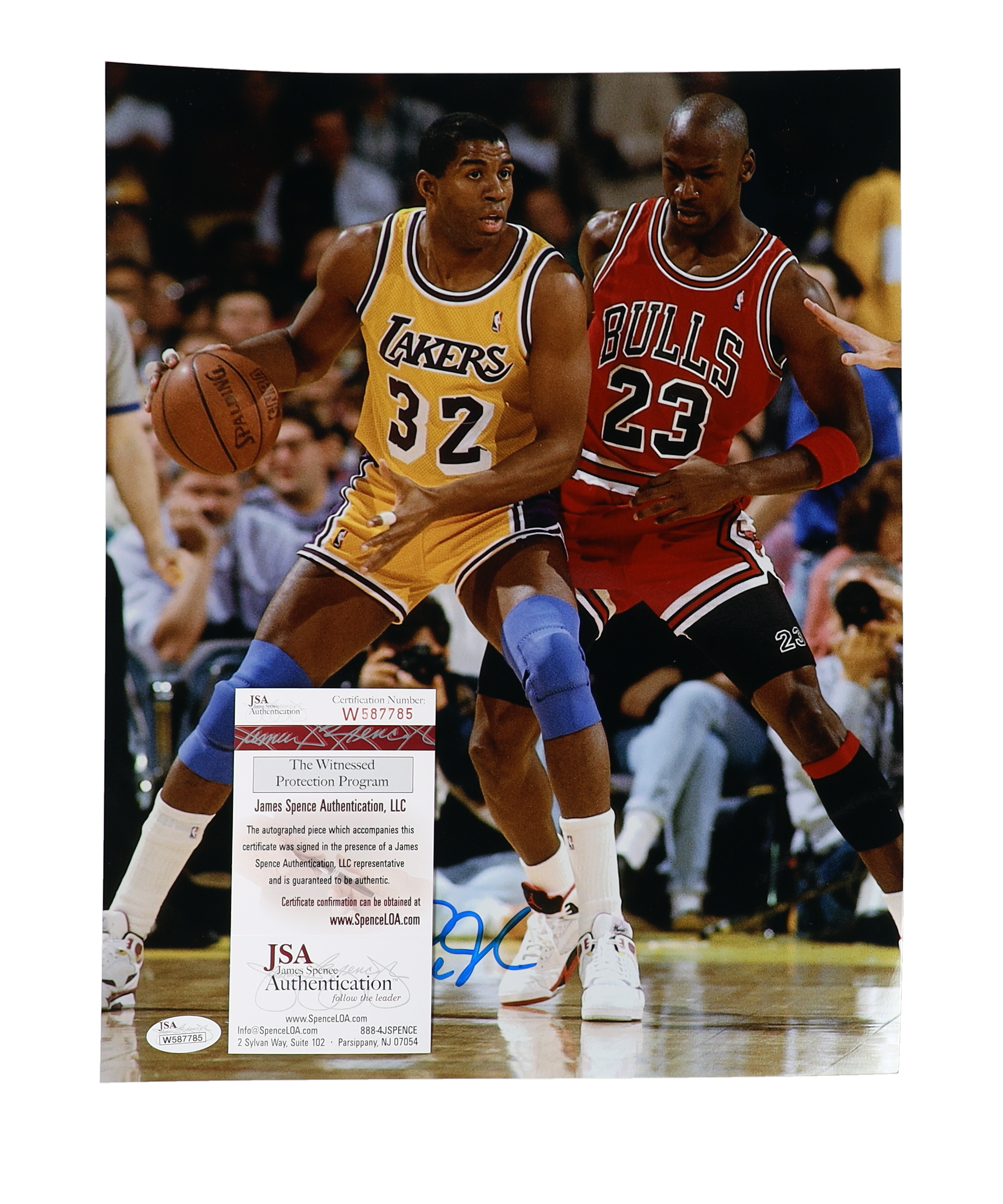 Photo measures 11" x 14" in size and has been hand-signed by Magic Johnson (Los Angeles Lakers, HOF).