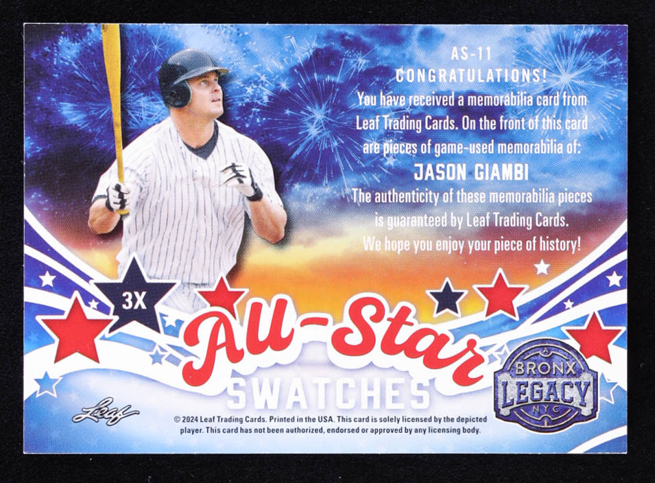 Jason Giambi 2024 Leaf A Bronx Legacy All-Star Swatches Spectrum Purple #AS11 #7/20