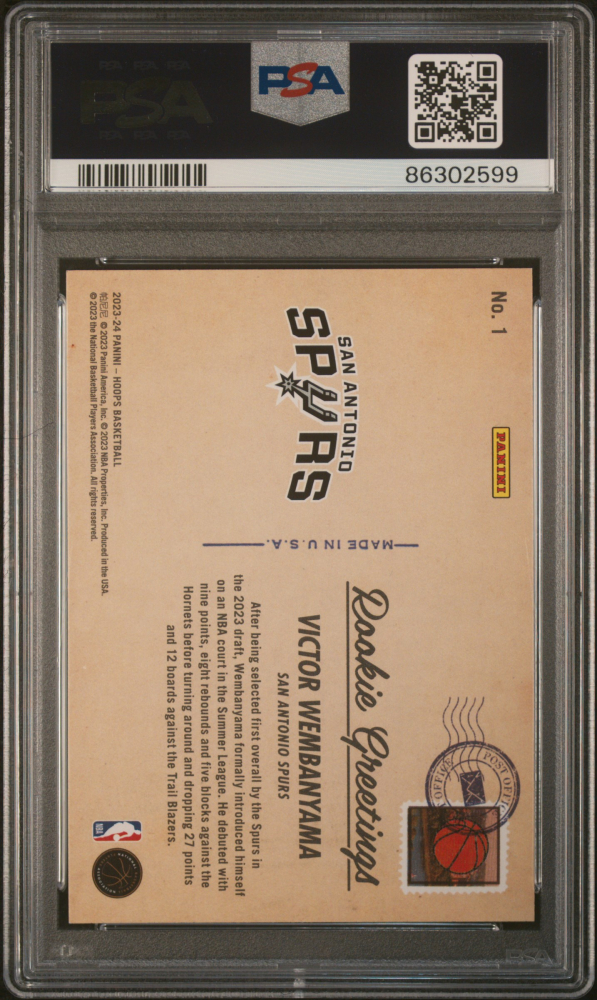 Victor Wembanyama 2023-24 Hoops Rookie Greetings Winter #1 RC (PSA 10)