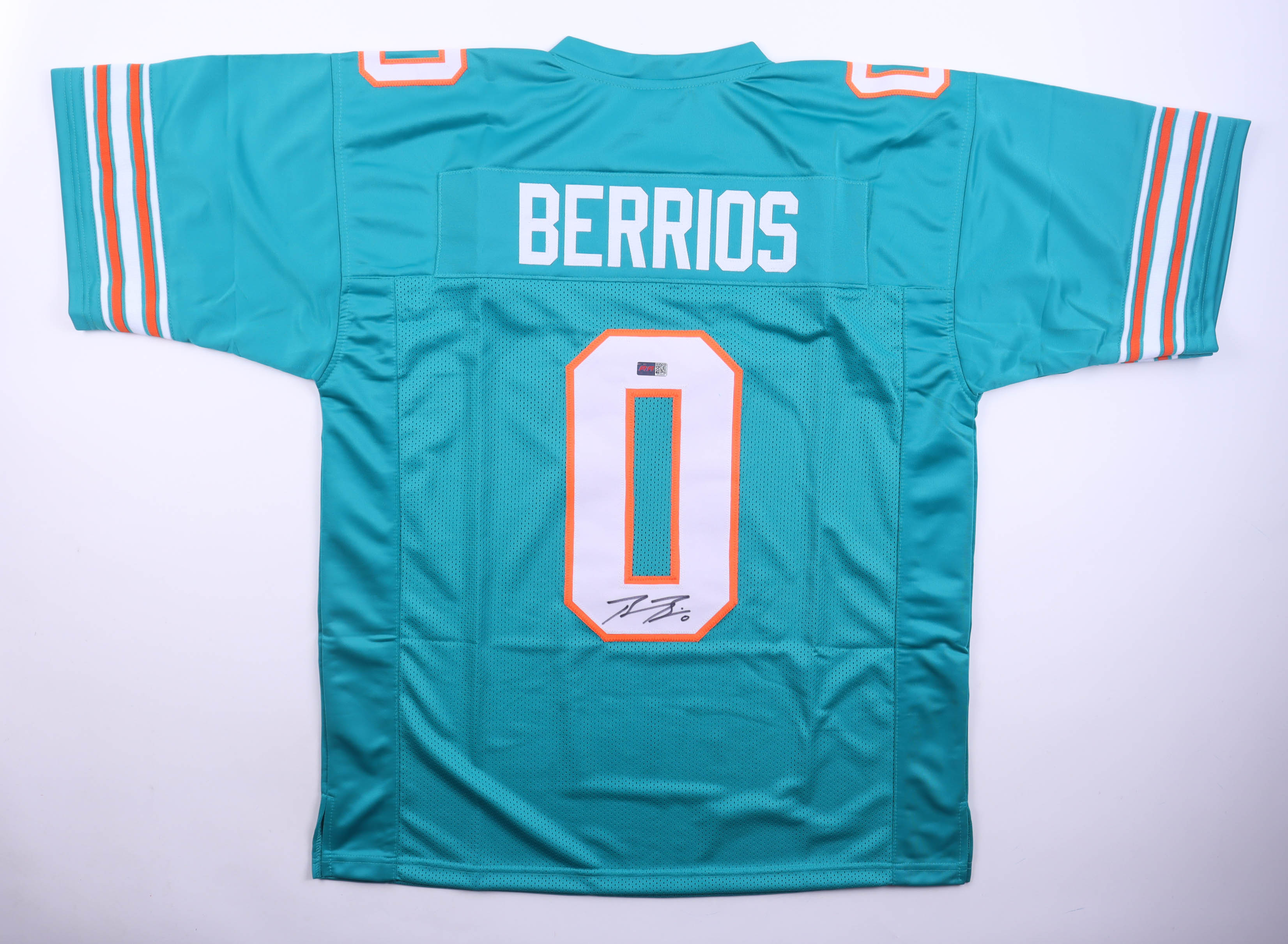Custom football jersey. Everything sewn on, size XL. Hand-signed by Braxton Berrios.
