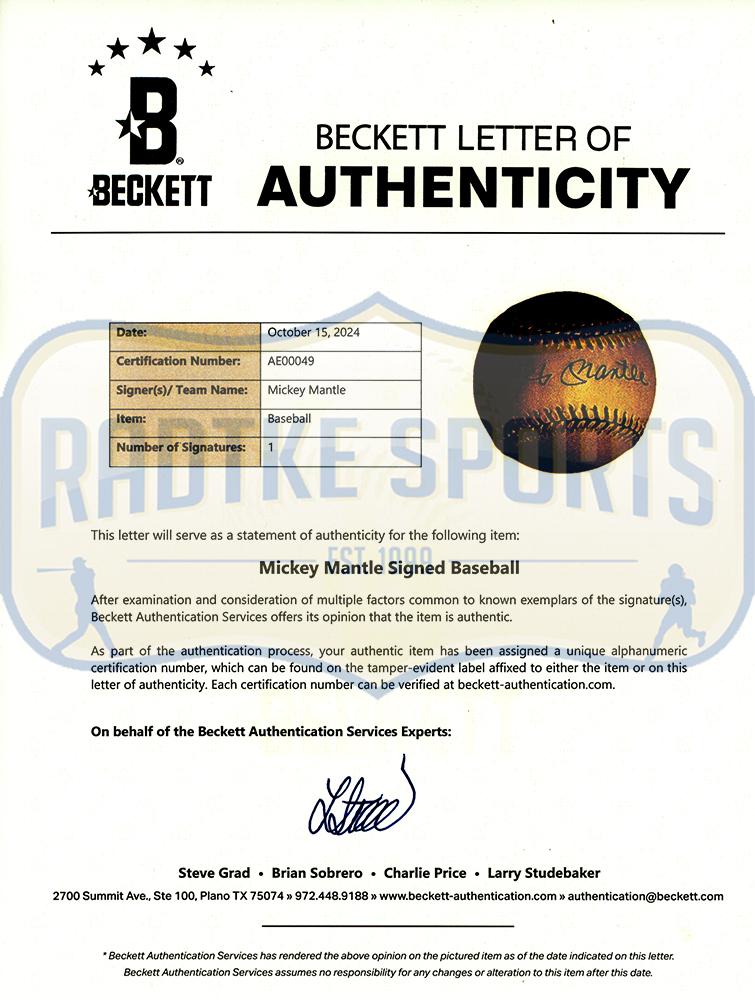 The autograph includes an official Beckett Authentication Services hologram and matching LOA for authenticity purposes.