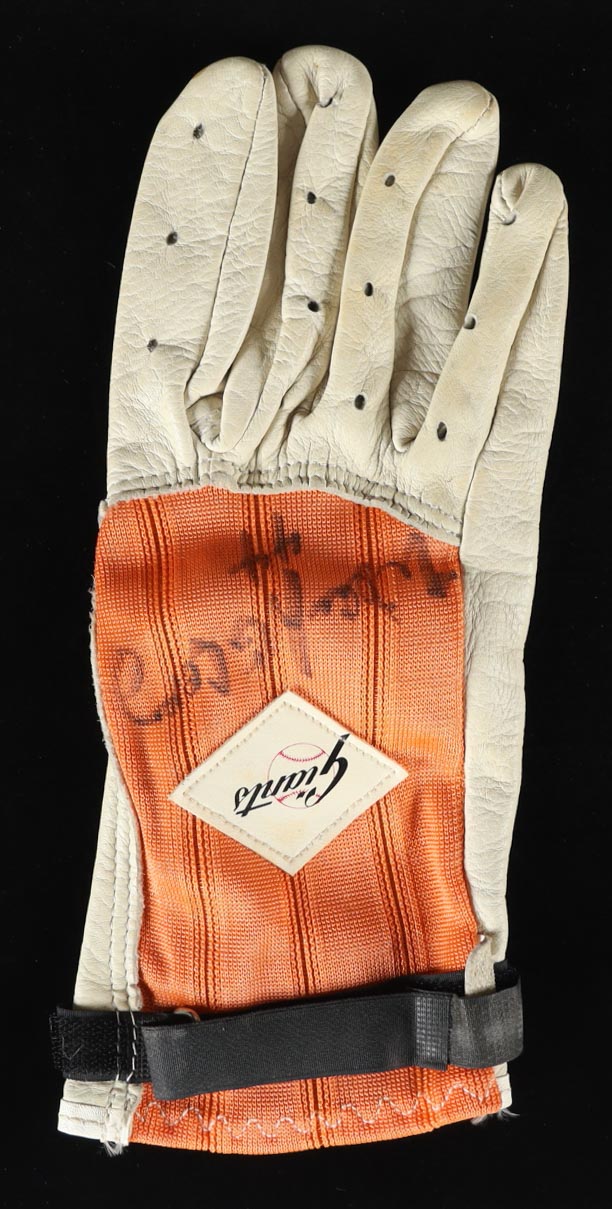 Gan Francisco Giants baseball batting glove has been hand-signed by Willie McCovey (D. 2018, San Francisco Giants, HOF). Please note baseball glove was game used by an unknown player. Refer to photos for more details.