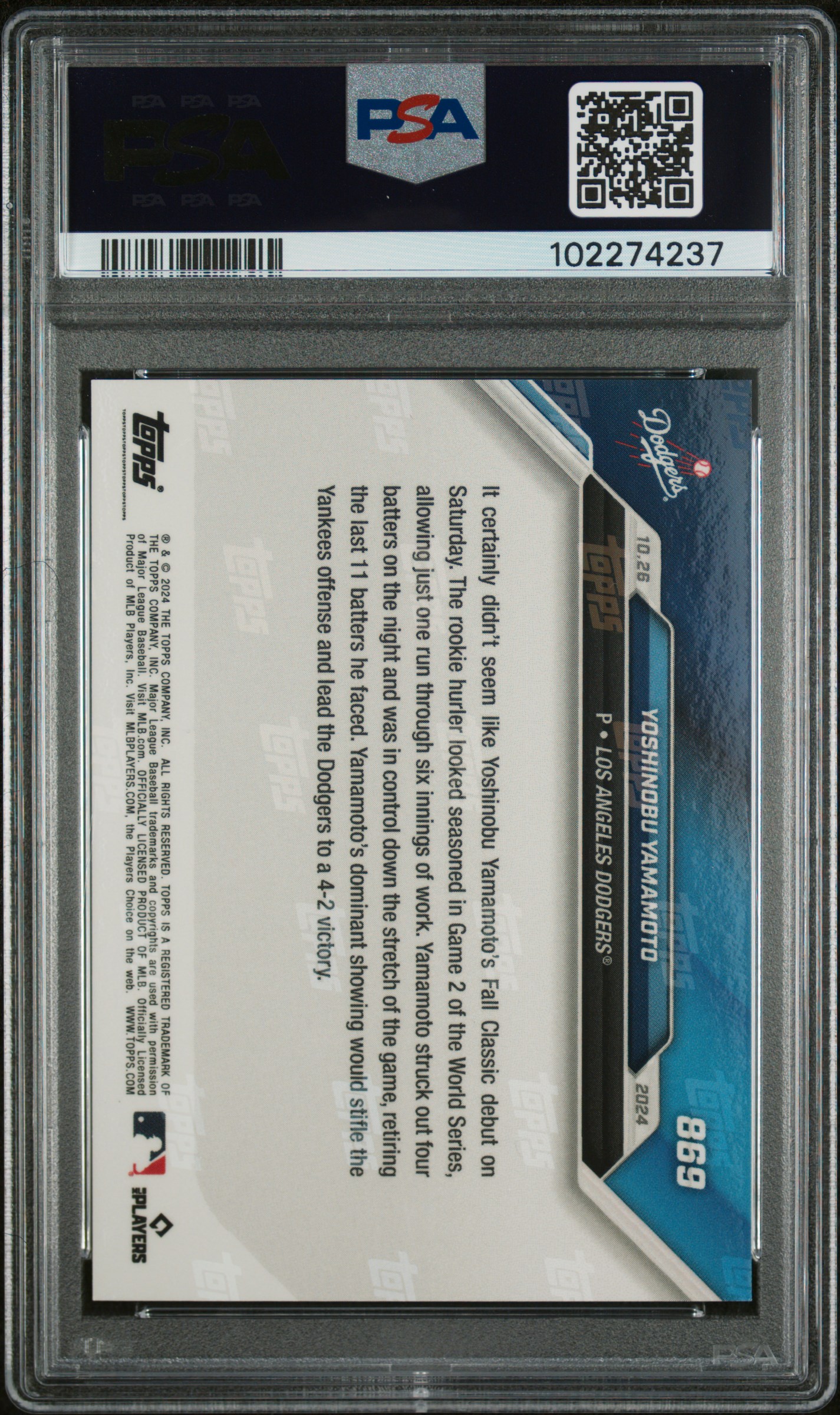 Yoshinobu Yamamoto 2024 Topps Now #869 RC (PSA 10)