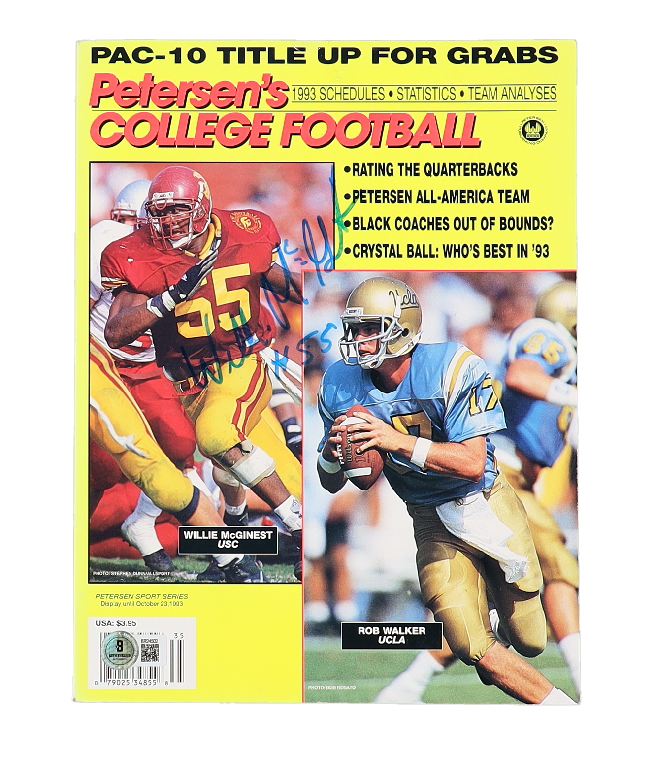 Magazine dated October 23, 1993 has been hand-signed Willie McGinest (USC Trojans).