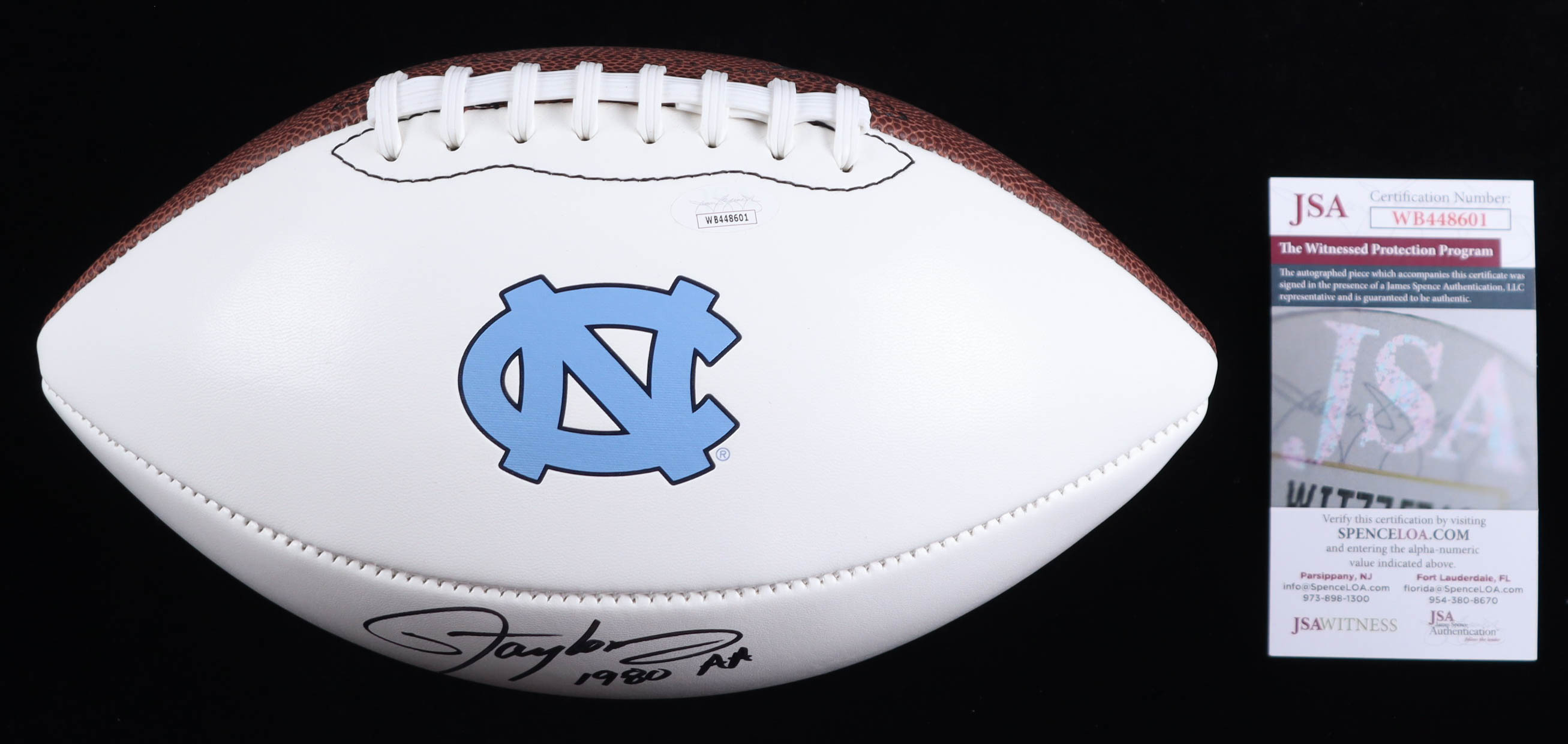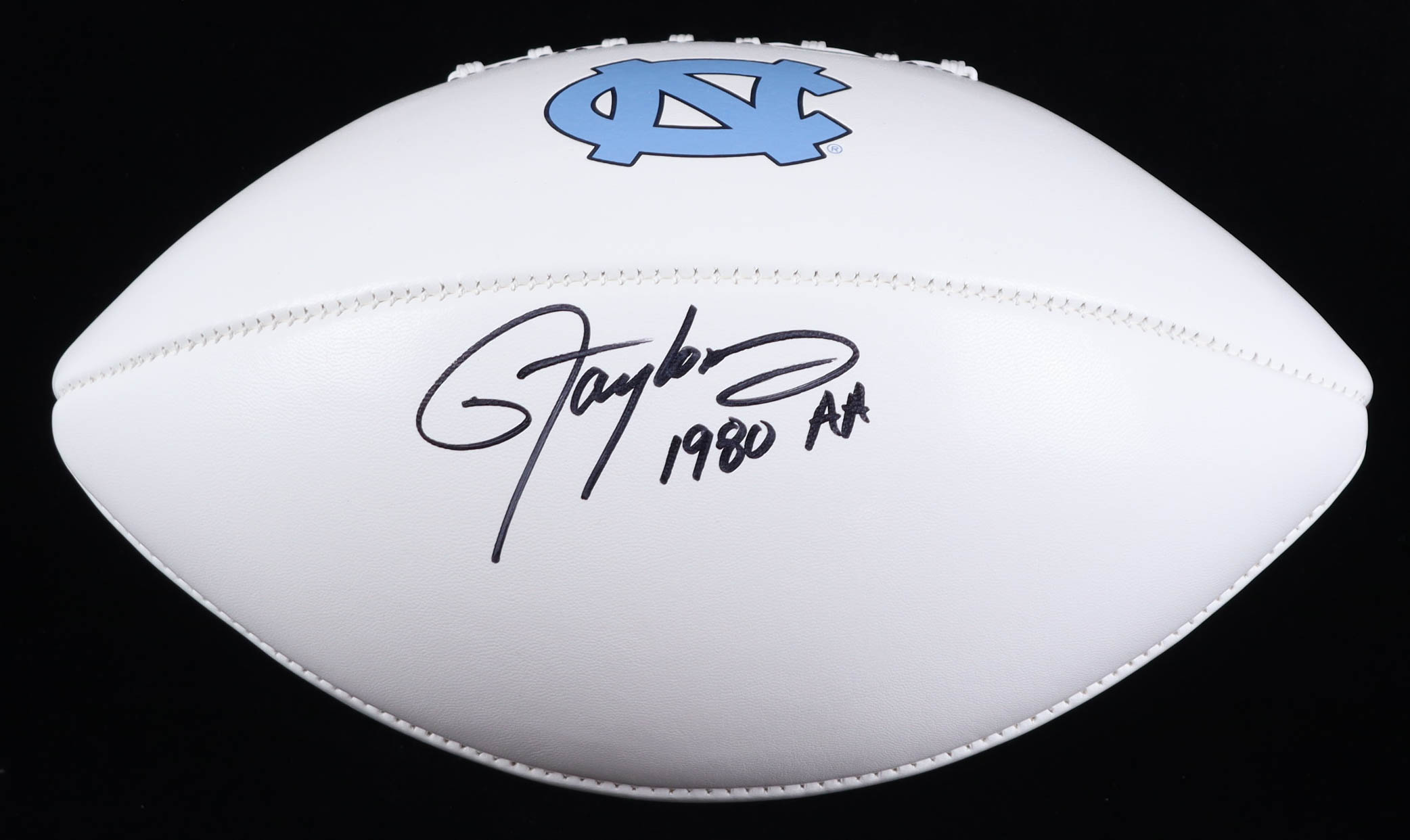 Lawrence Taylor Signed North Carolina Tar Heels Logo Football Inscribed "1980 AA" (JSA)