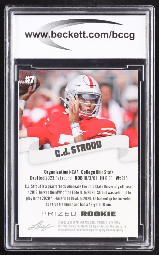 CJ Stroud 2022 Leaf Prized Rookie #7 RC (BCCG 10)