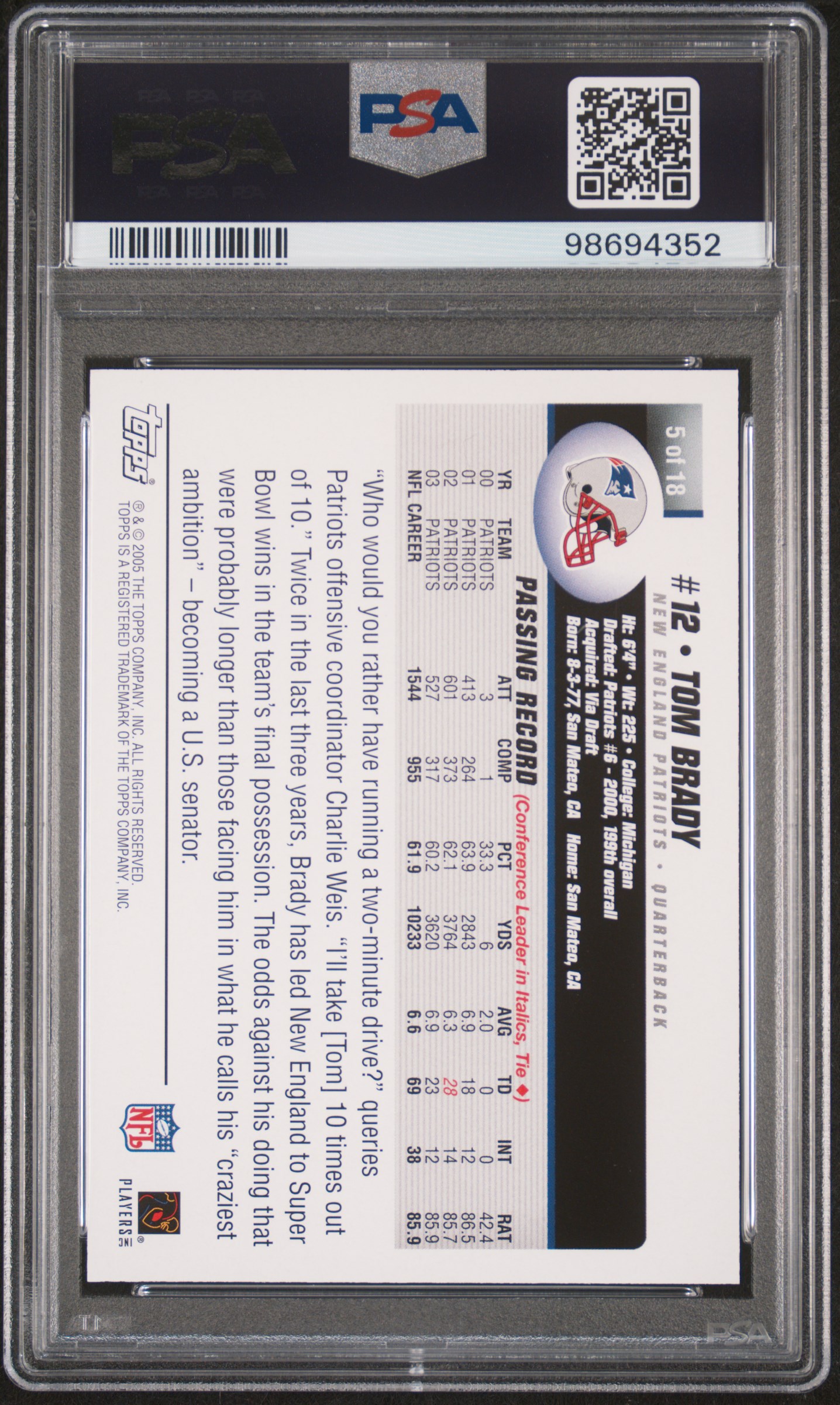 Tom Brady 2005 Topps Super Bowl XXXIX Card Show #5 (PSA 9)