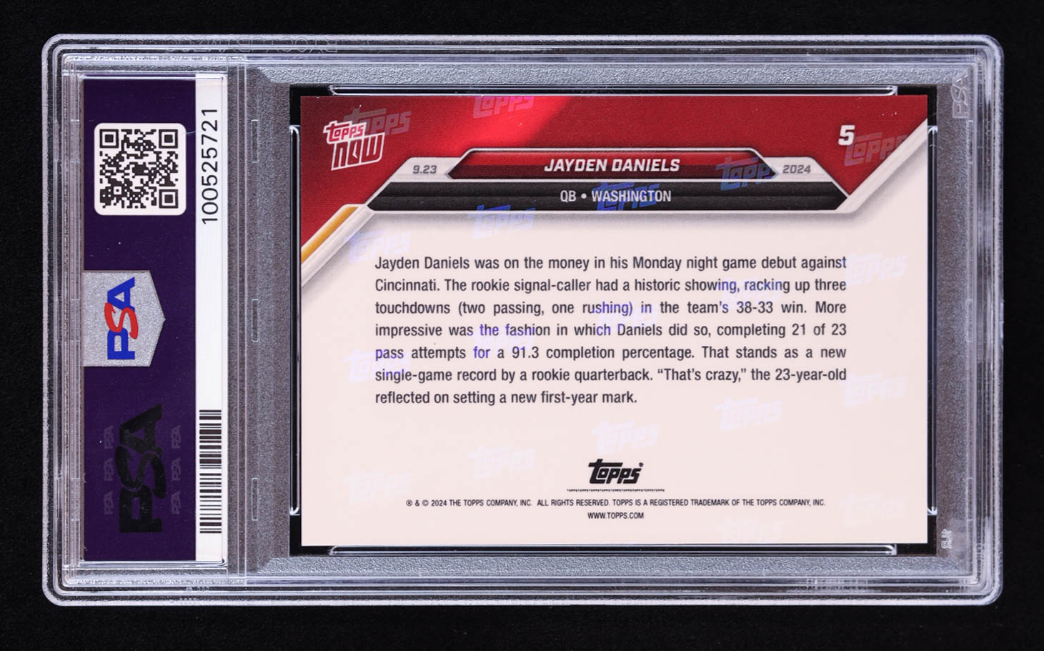Jayden Daniels 2024 Topps Now #5 RC (PSA 10)