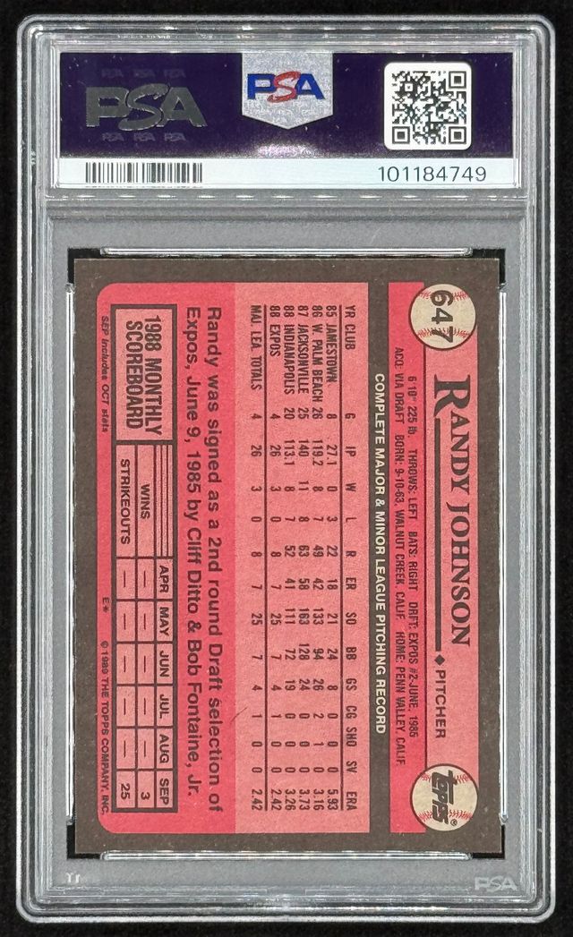 Randy Johnson 1989 Topps #647 RC (PSA 9)