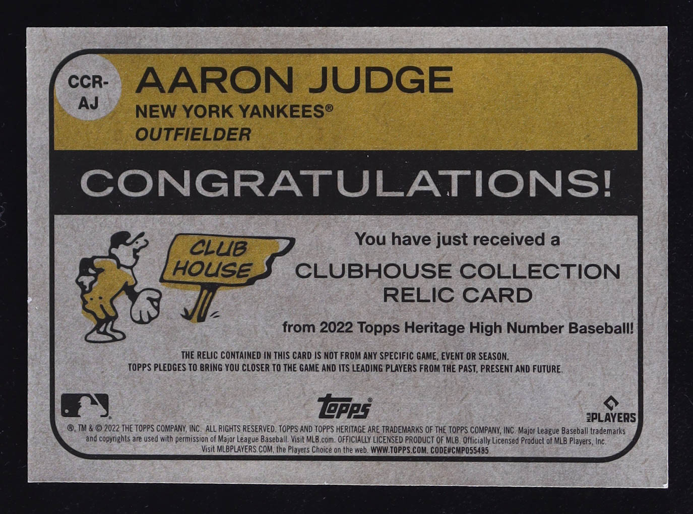 Aaron Judge 2022 Topps Heritage Clubhouse Collection Relics #CCRAJ HN