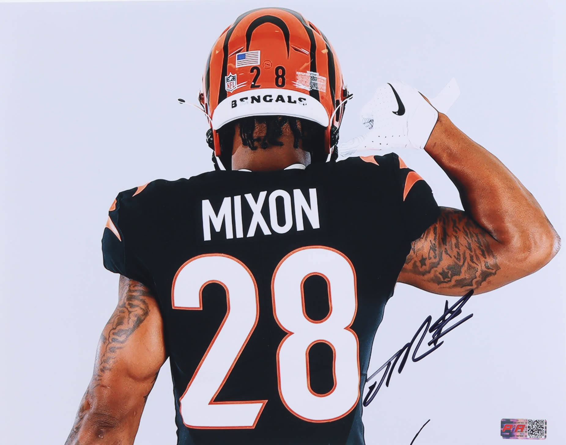Photo measures 11" x 14" in size and has been hand-signed by Joe Mixon (Cincinnati Bengals).