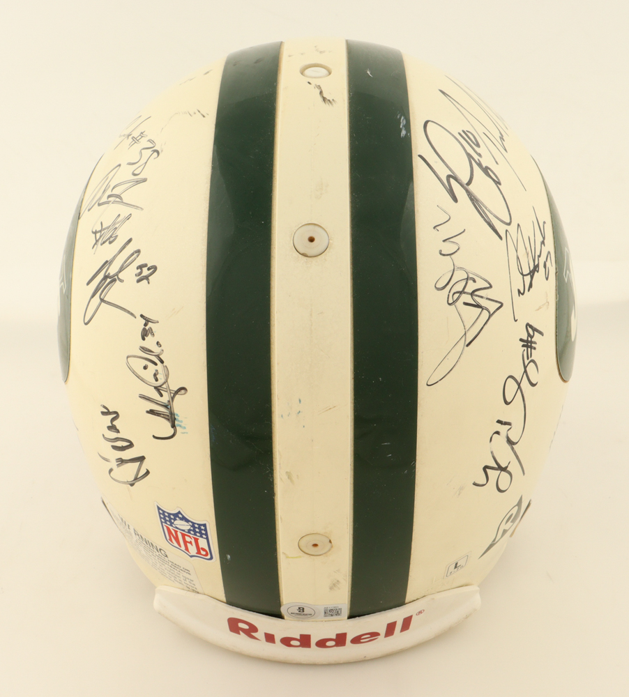 2009 Jets Full-Size Authentic On-Field Helmet Signed By (20) with Bart Scott, Alan Faneca, Zach Potter, Donald Strickland (Beckett)