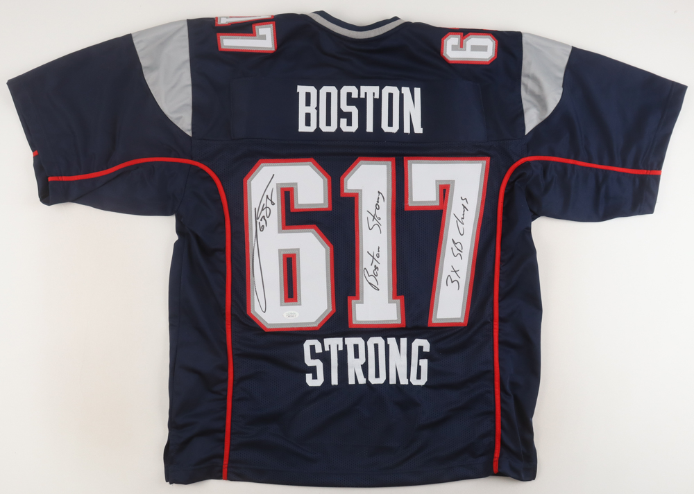 Joe Andruzzi Signed Jersey Inscribed "Boston Strong" & "3x SB Champs" (JSA)