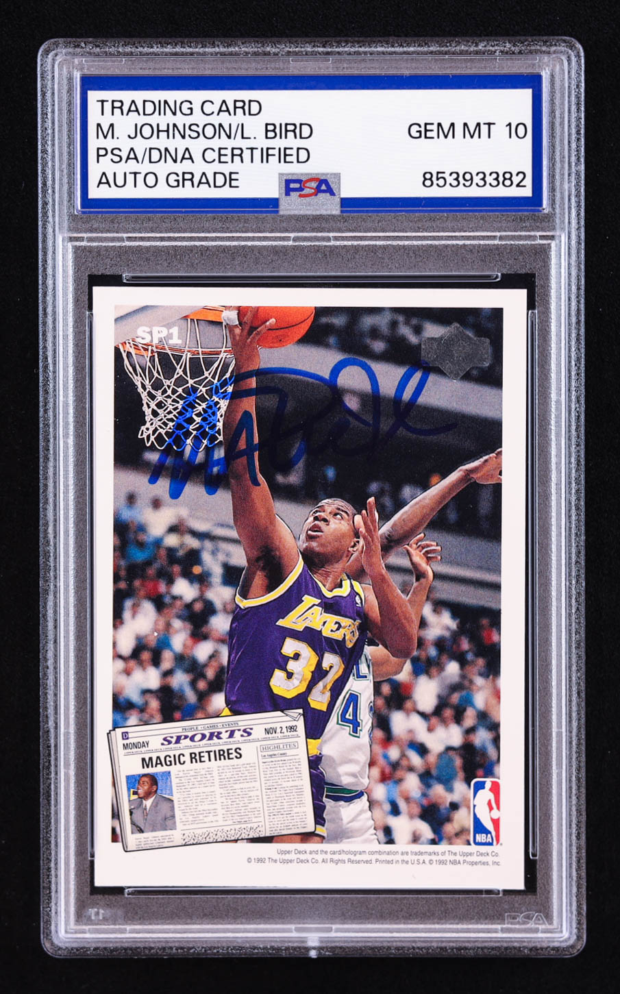 Larry Bird & Magic Johnson Signed 1992-93 Upper Deck #SP1 Retirement (PSA | Auto 10)