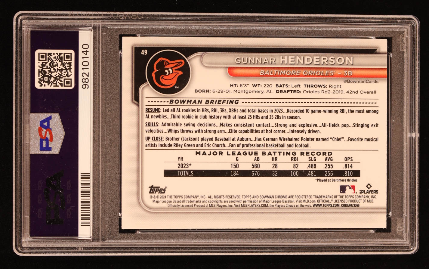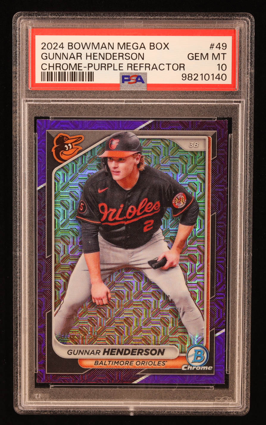 Gunnar Henderson 2024 Bowman Chrome Bowman Mega Box Purple Refractors #49 RC #62/250 (PSA 10)