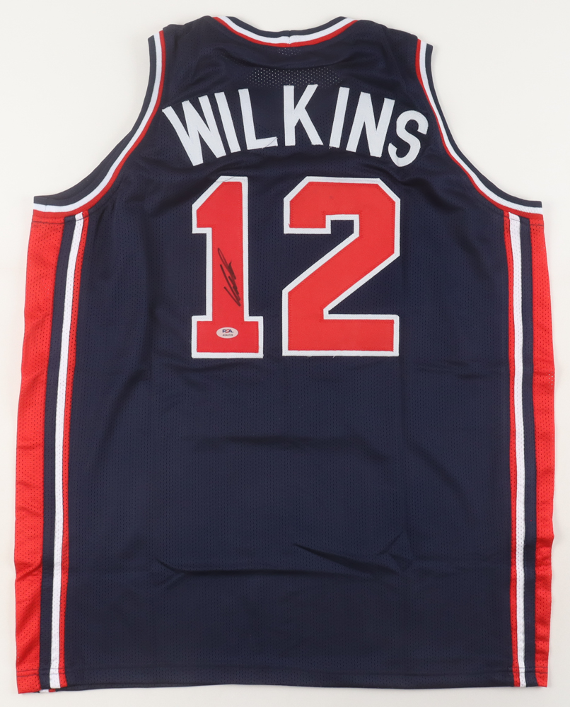 Custom jersey. Everything is sewn on, size XL. Hand-signed by Dominique Wilkins.