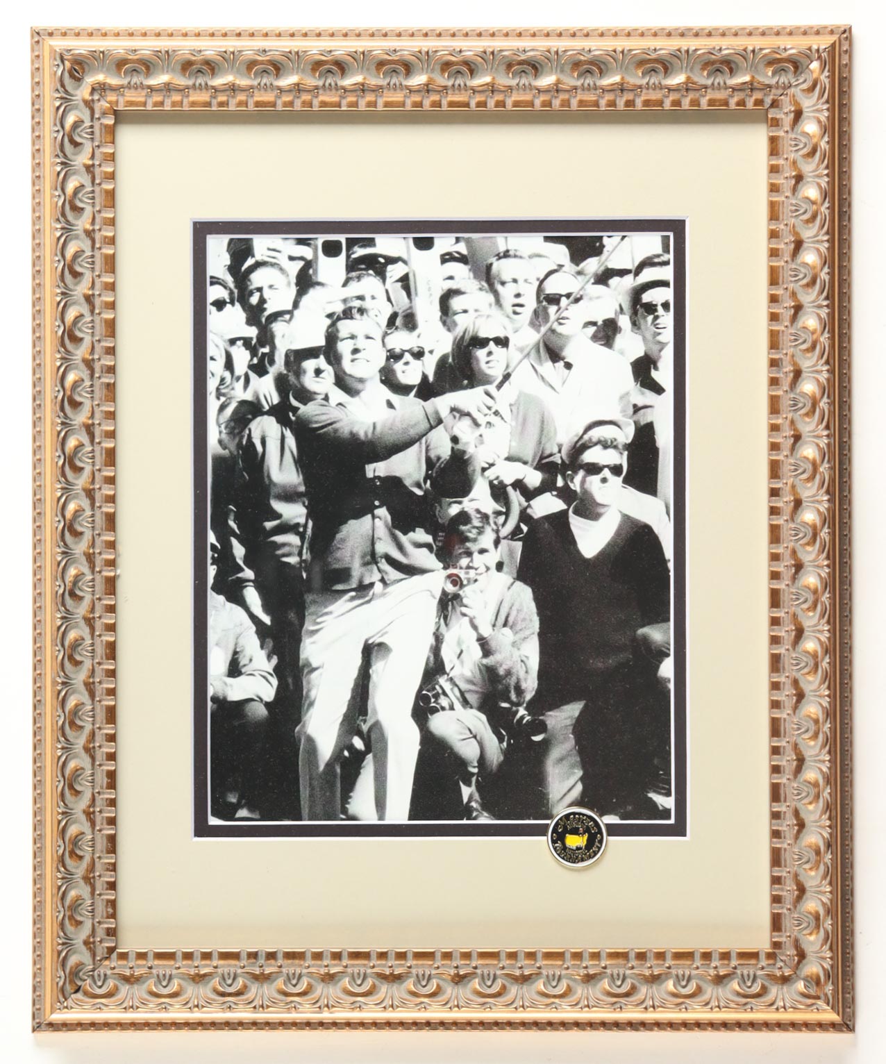 Custom frame measures approximately 13.25" x 16.25" in size and features a photo depicting Arnold Palmer (D. 2016, HOF). The display also includes a Masters Tournament pin. Please note, the display is unsigned.