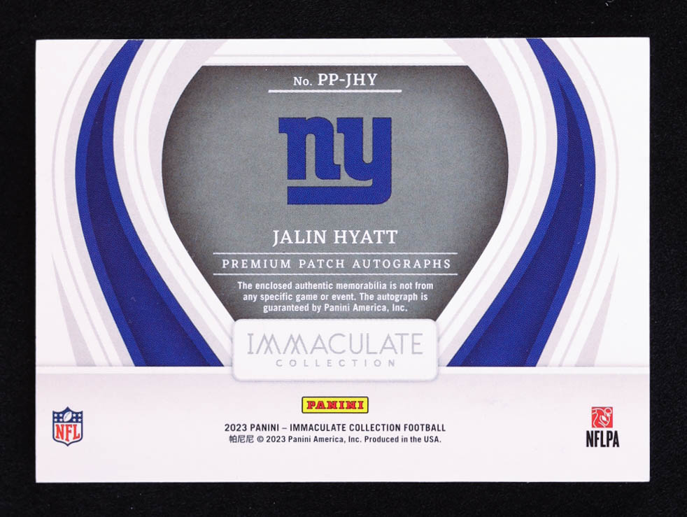 Jalin Hyatt 2023 Panini Immaculate Collection Premium Patch Rookie Autographs Gold #PP-JHY 09/25