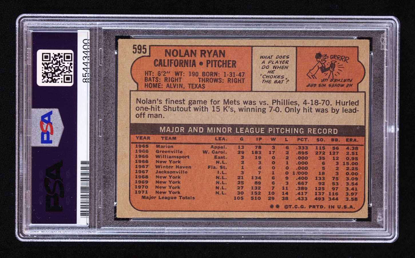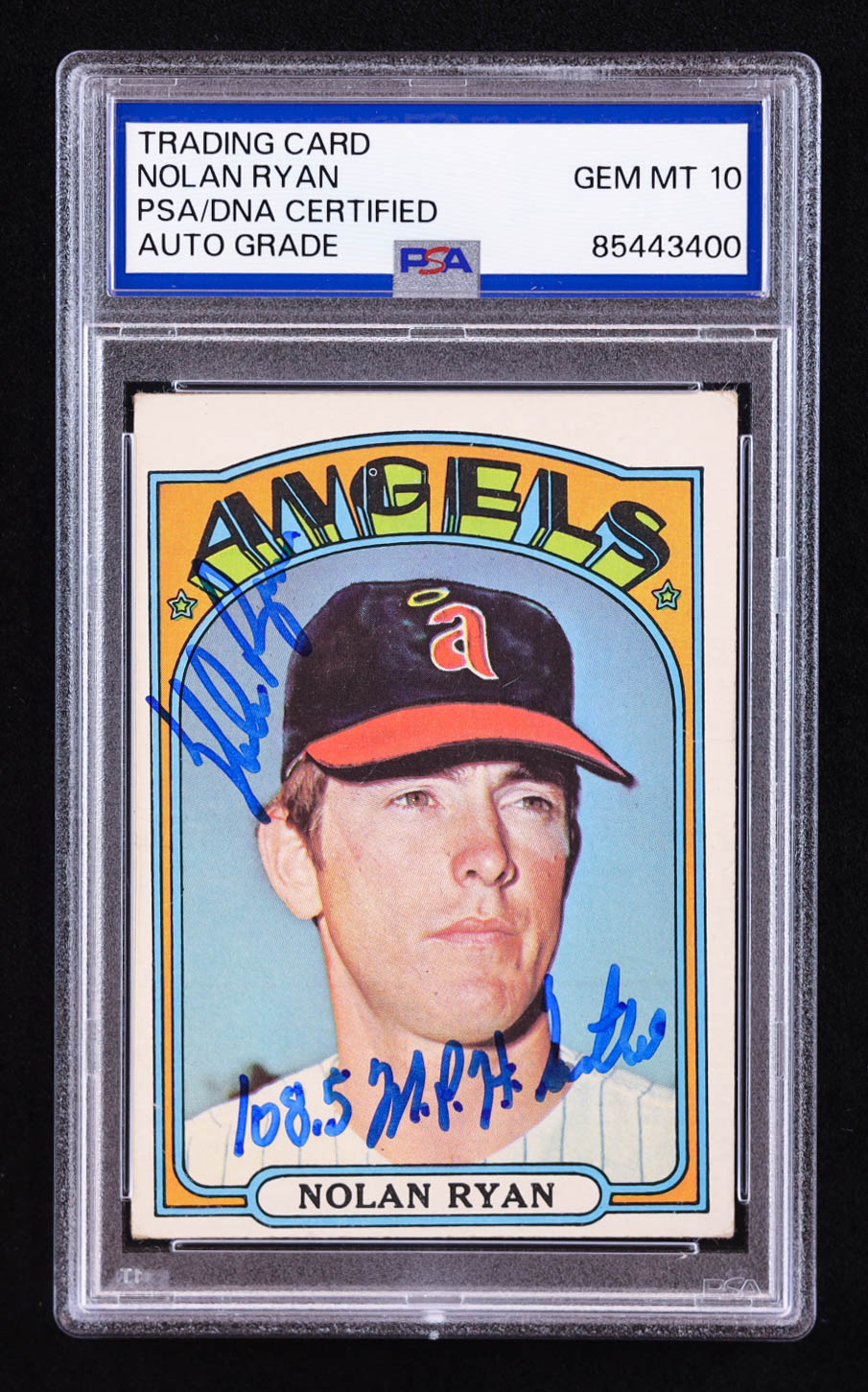 Nolan Ryan Signed 1972 Topps #595 Inscribed "108.5 MPH Fastball" (PSA | Auto 10)