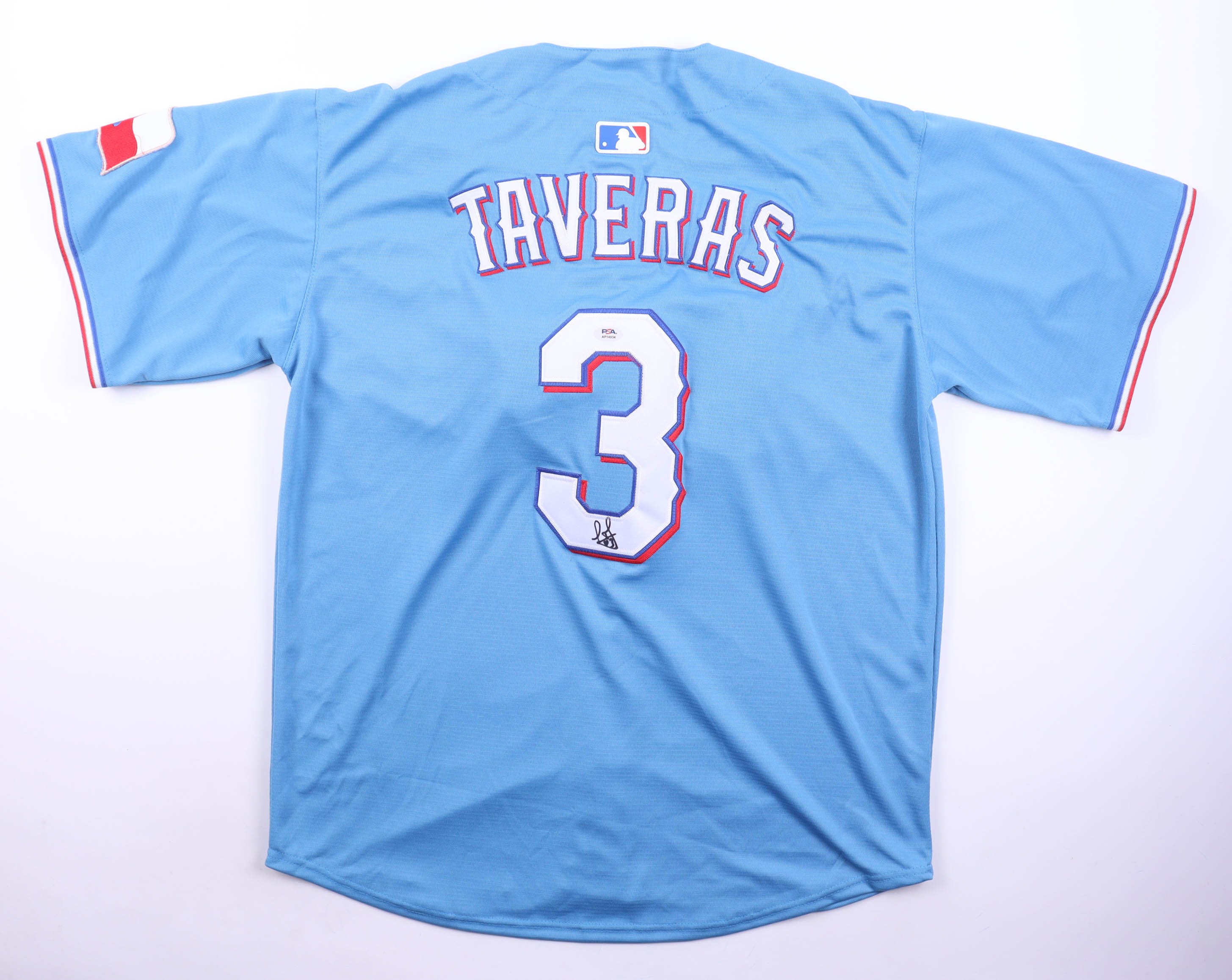Nike jersey. Everything sewn on, size XL. Hand-signed by Leody Taveras.