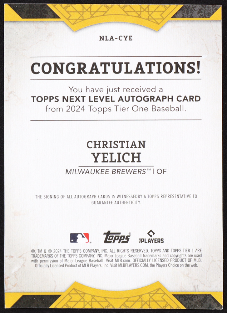 Christian Yelich 2024 Topps Tier One Next Level Autographs #NLACYE #73/99