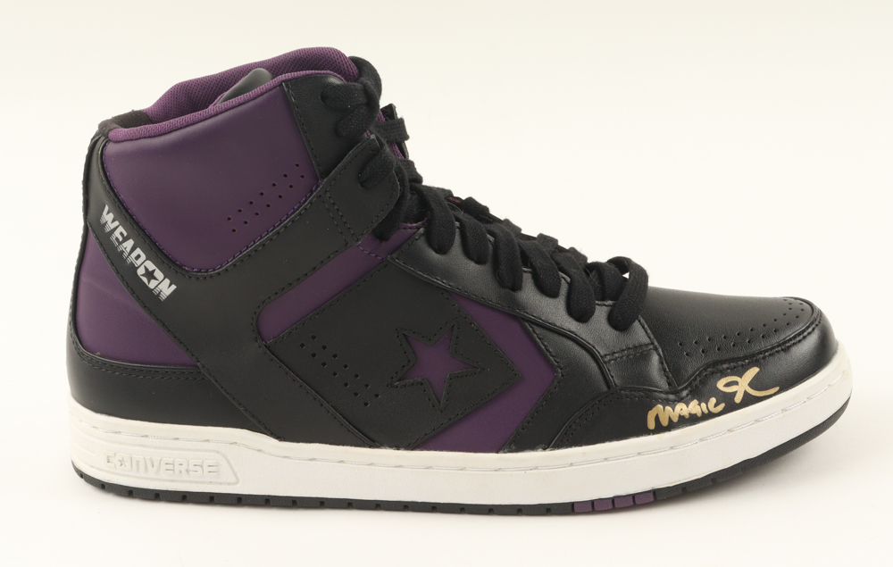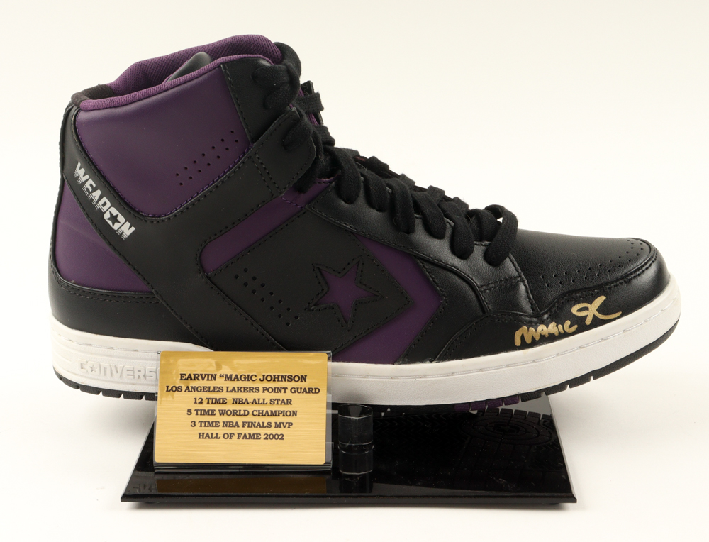 Converse Weapon basketball shoe. Hand-signed by Magic Johnson (Los Angeles Lakers, HOF). Display stand is included, as shown.