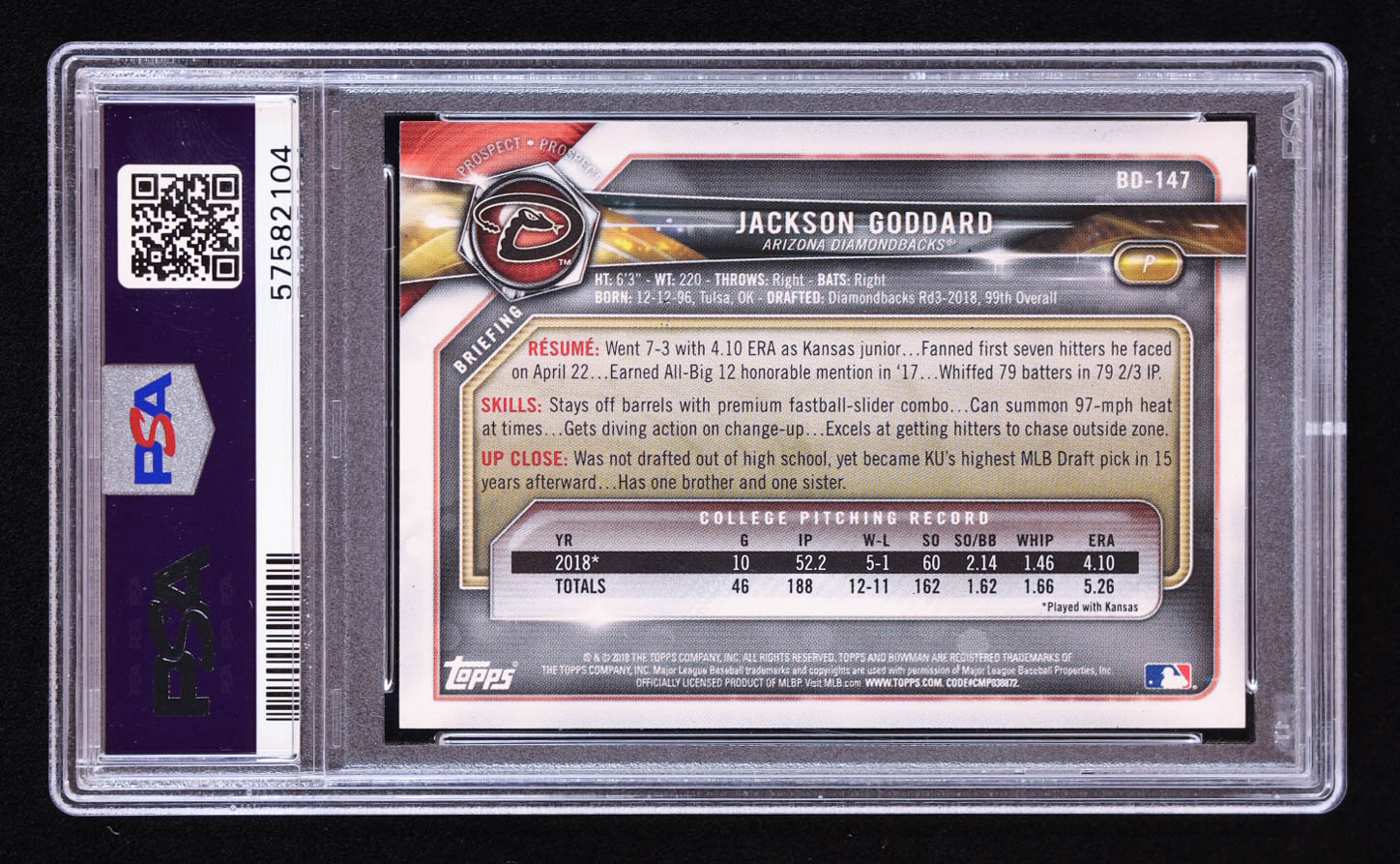 Jackson Goddard Signed 2018 Bowman Draft #BD147 RC (PSA)