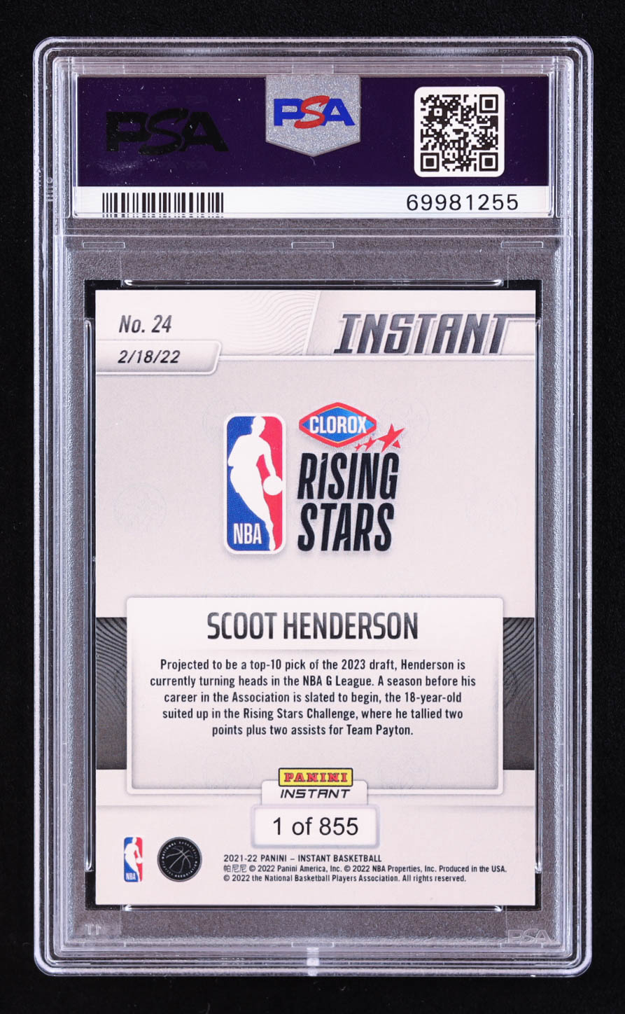 Scoot Henderson Signed 2021-22 Panini Instant Rising Stars #24 RC (PSA | Auto 9)