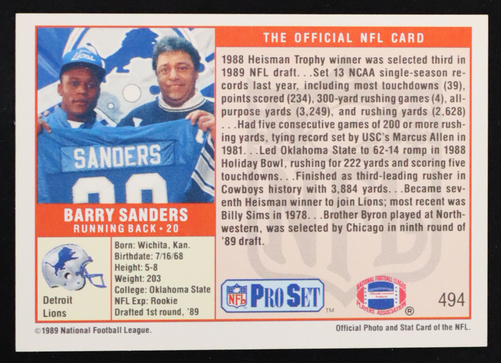 Barry Sanders 1989 Pro Set #494 RC
