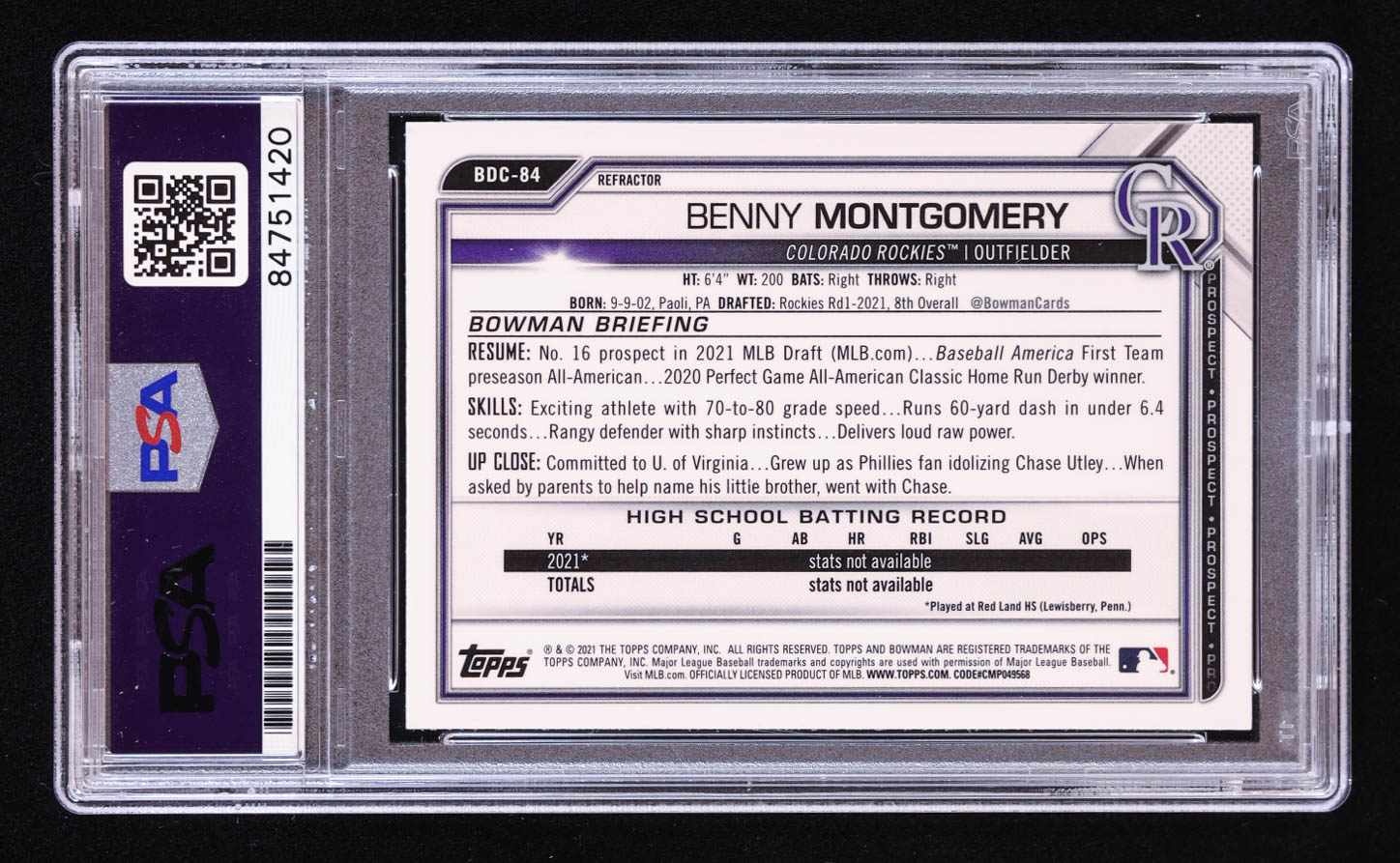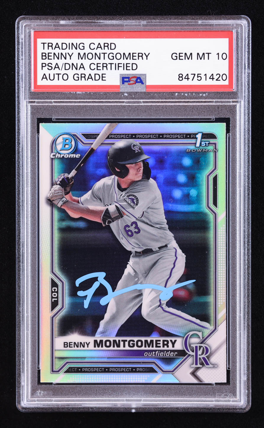 Benny Montgomery Signed 2021 Bowman Chrome Draft Refractors #BDC84 RC (PSA | Auto 10)