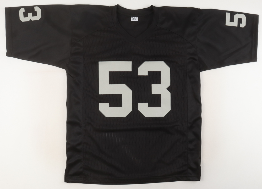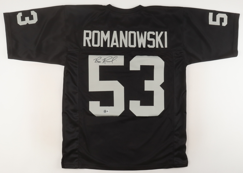 Custom jersey. Everything sewn on, size XL. Hand-signed by Bill Romanowski.