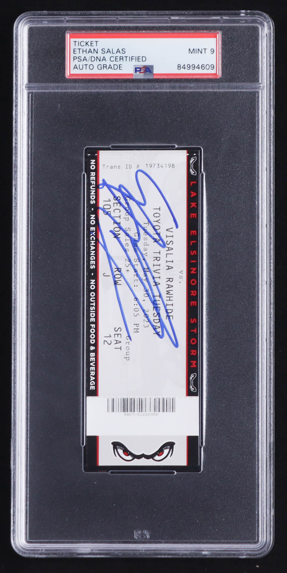 Ticket stub is dated May 30th, 2023. Hand-signed by Ethan Salas (Lake Elsinore Storm). Please see photos for more details regarding the condition of the item.