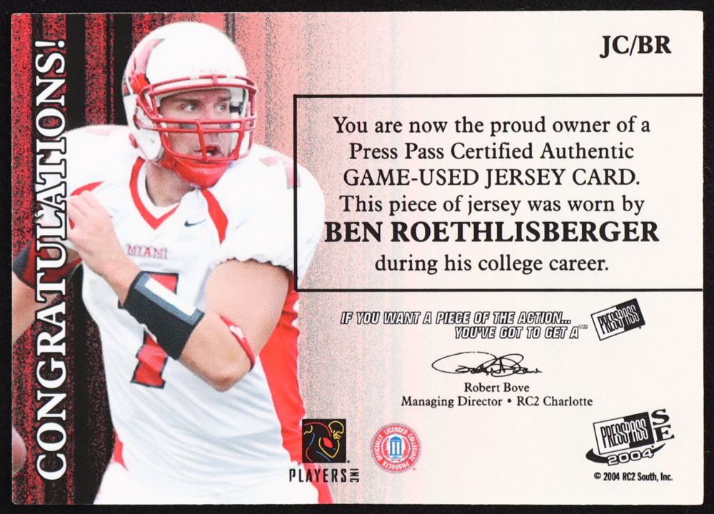 Ben Roethlisberger 2004 Press Pass SE Game Used Jerseys Bronze #JCBR RC #91/700
