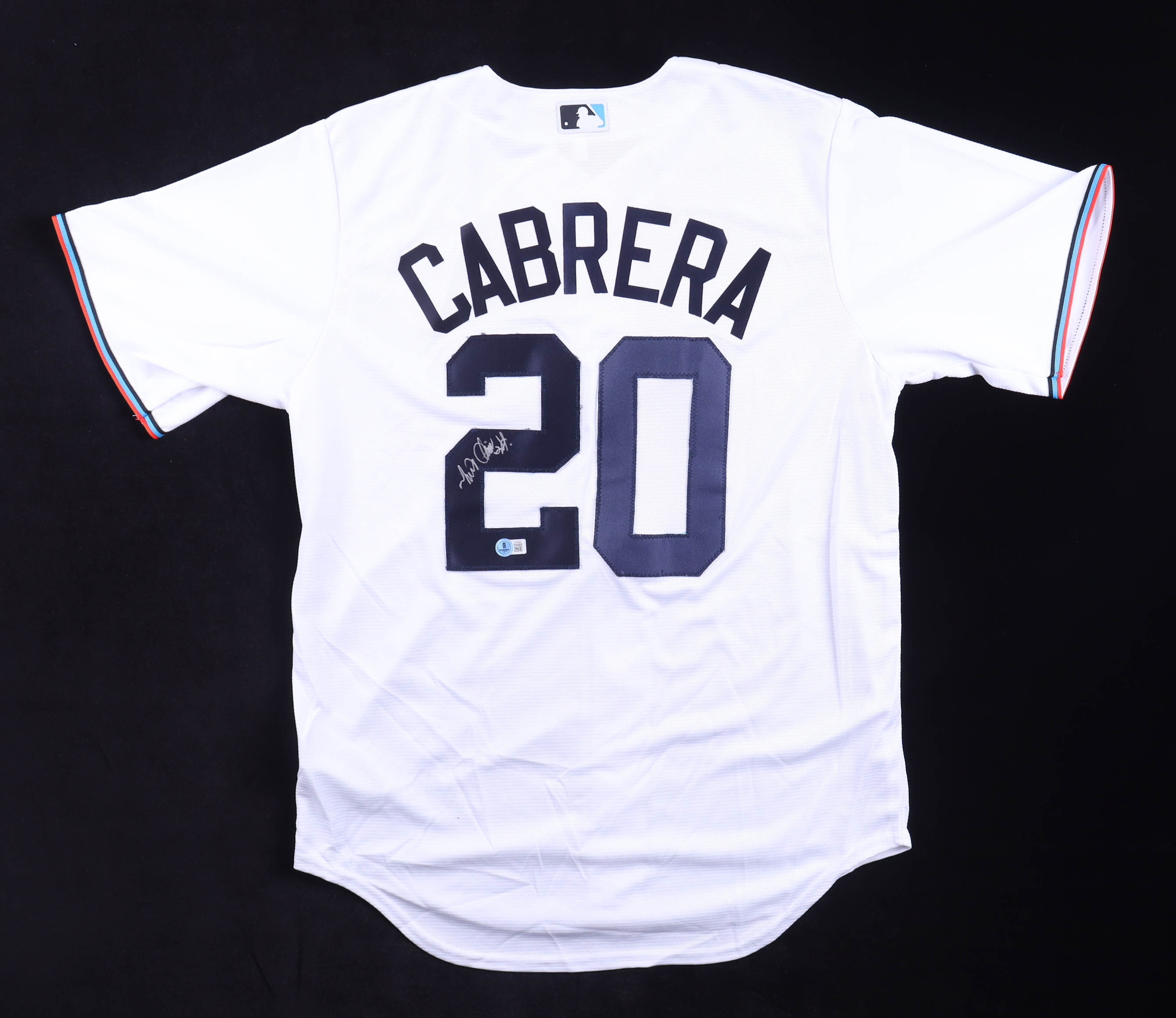 Nike jersey with everything sewn & pressed on, size M. Hand-signed by Miguel Cabrera.
