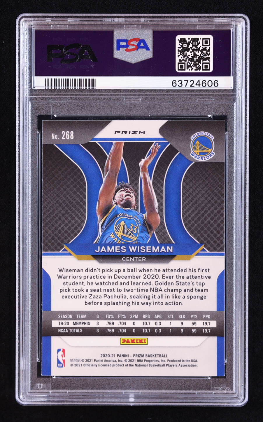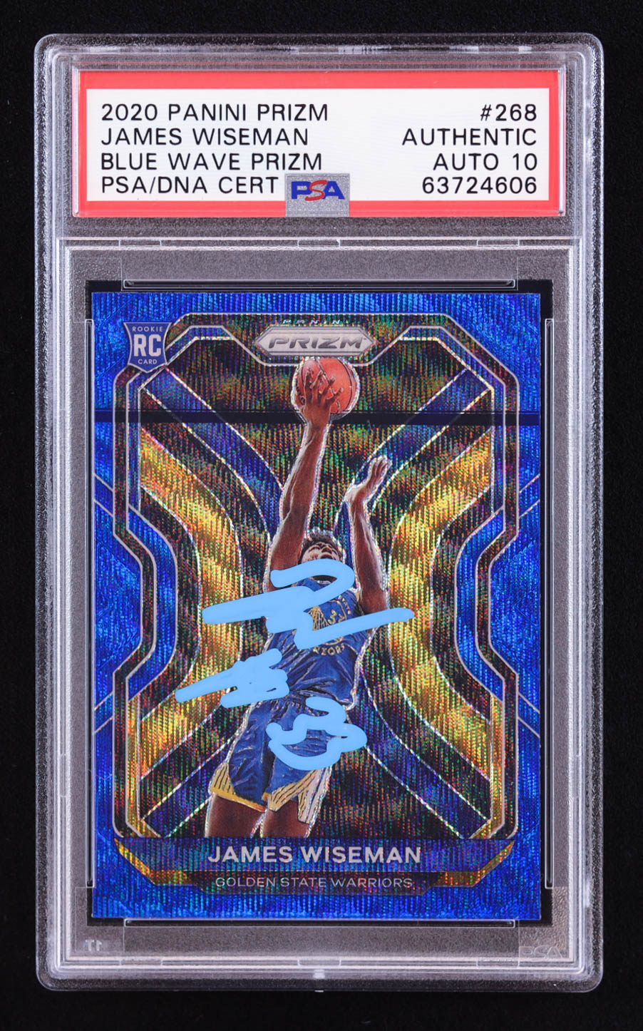 James Wiseman Signed 2020-21 Panini Prizm Prizms Blue Wave #268 RC (PSA | Auto 10)