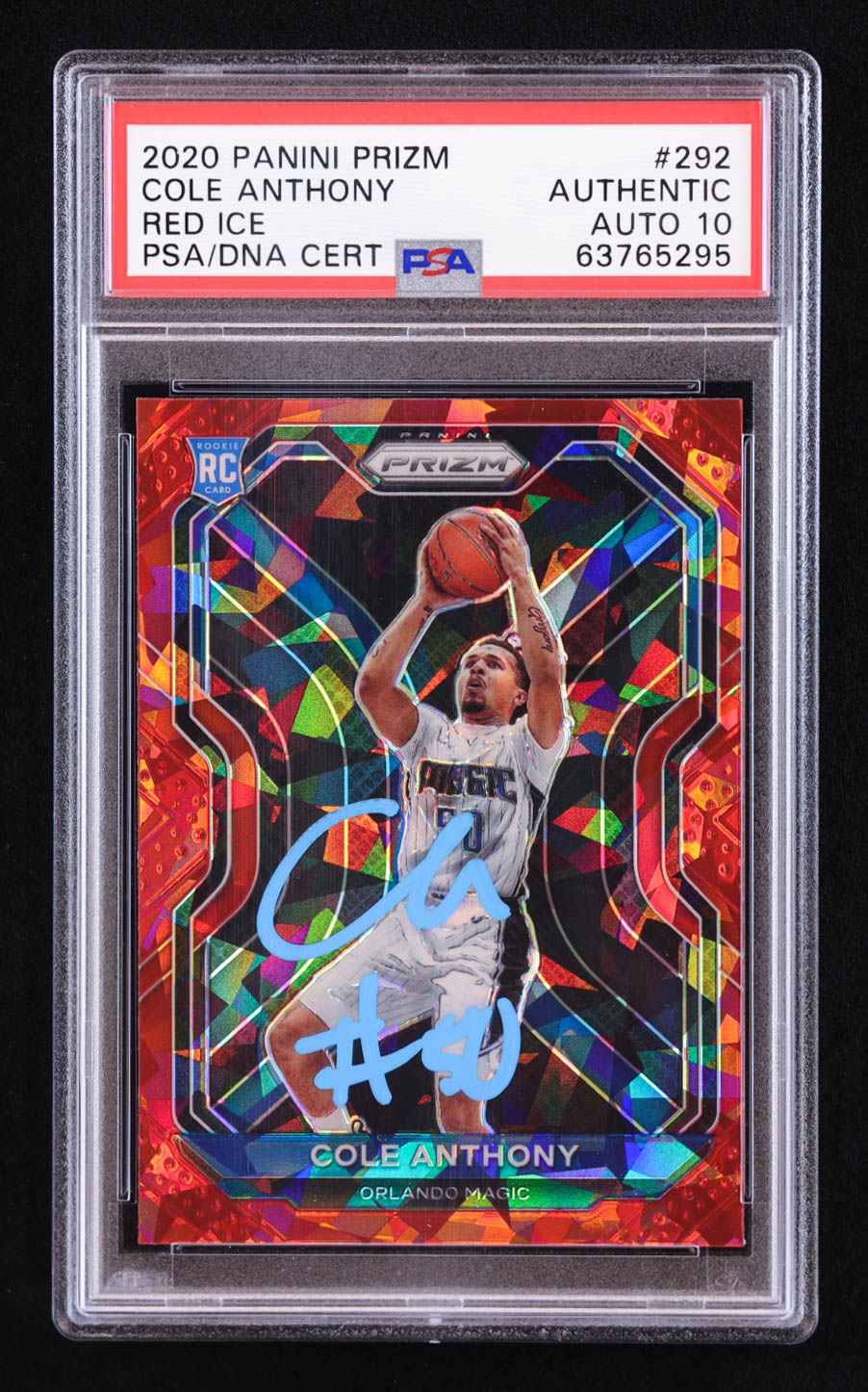 Cole Anthony Signed 2020-21 Panini Prizm Prizms Red Ice #292 RC (PSA | Auto 10)