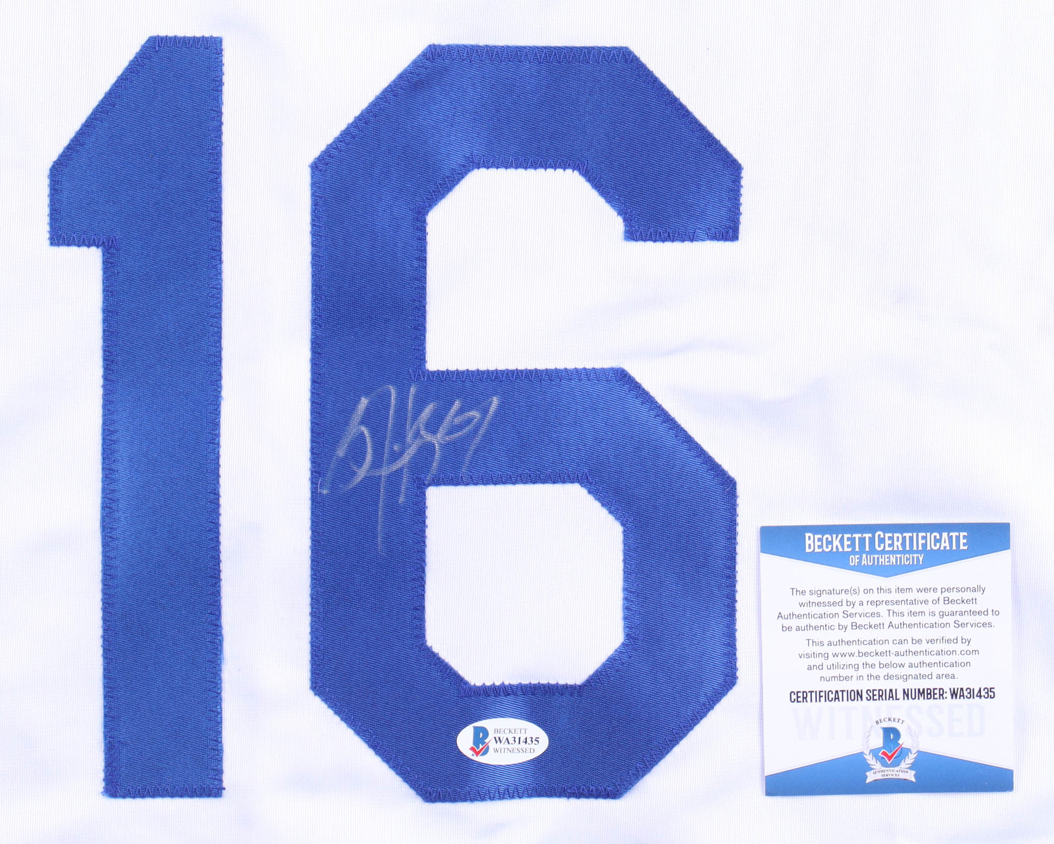 The autograph includes an official Beckett Authentication Services serially-numbered hologram and matching COA for authenticity purposes. The signing of this item was witnessed by Beckett.